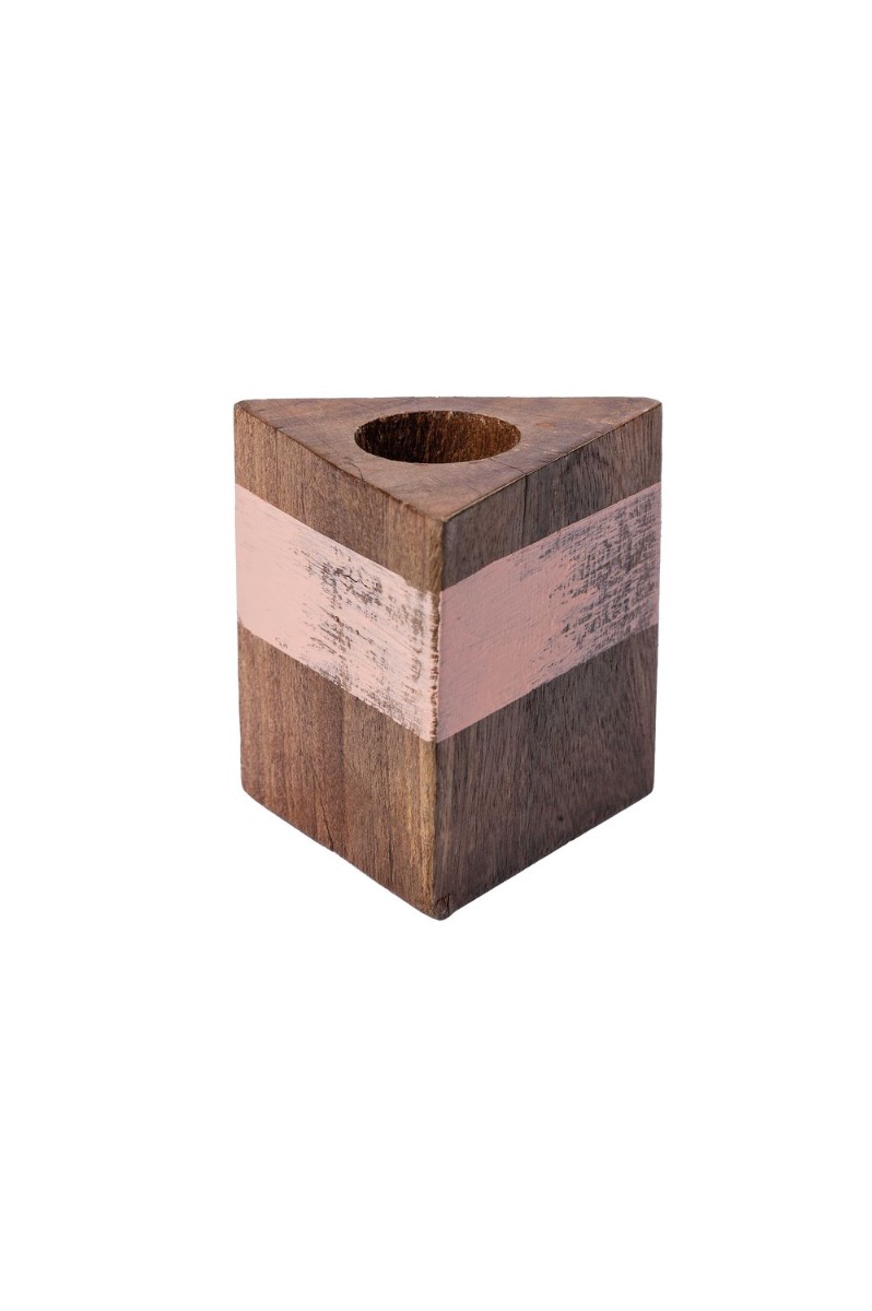 Chandelier triangulaire en bois KARLINA pour bougies chandelles, naturel-saumon, 6x6x6cm