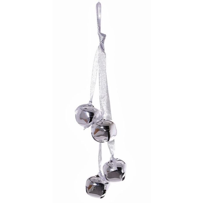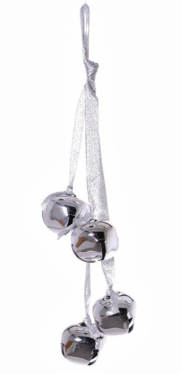 Cloche de Noël DARA, 4 pièces, suspendue, argent, 35cm, Ø4,5cm