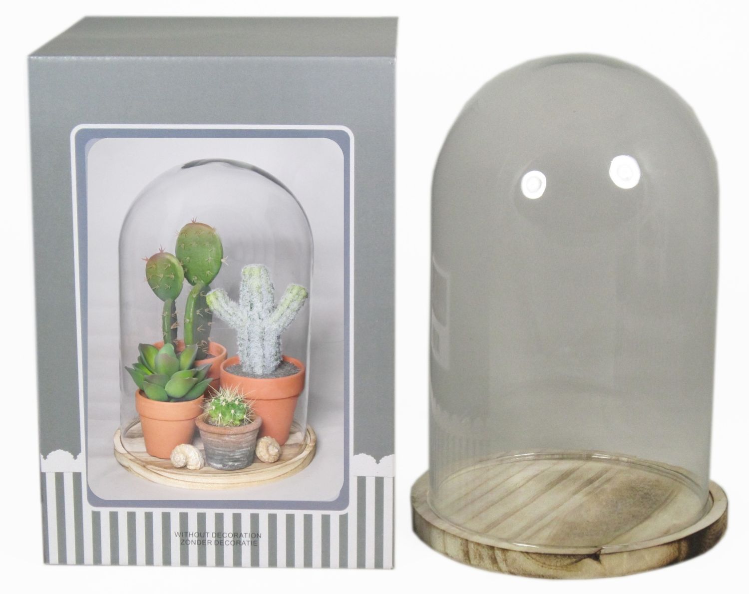 Cloche en verre SABIKA avec base en bois marbré, transparent, 25cm, Ø17,5cm