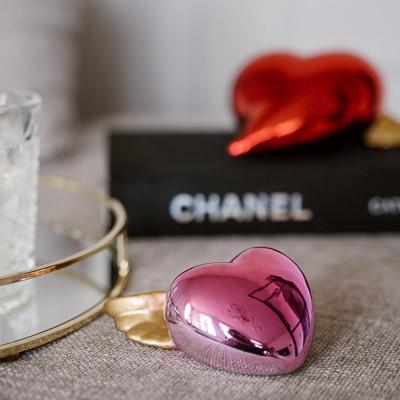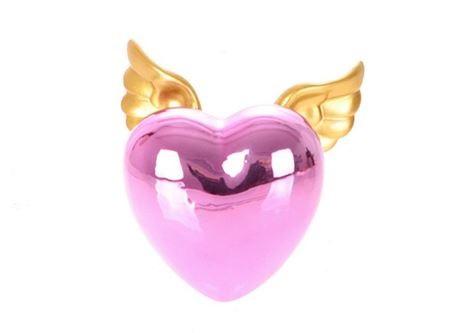 Cœur décoratif DIZZY avec des ailes, en céramique, rose fuchsia-doré, 11x9x4cm