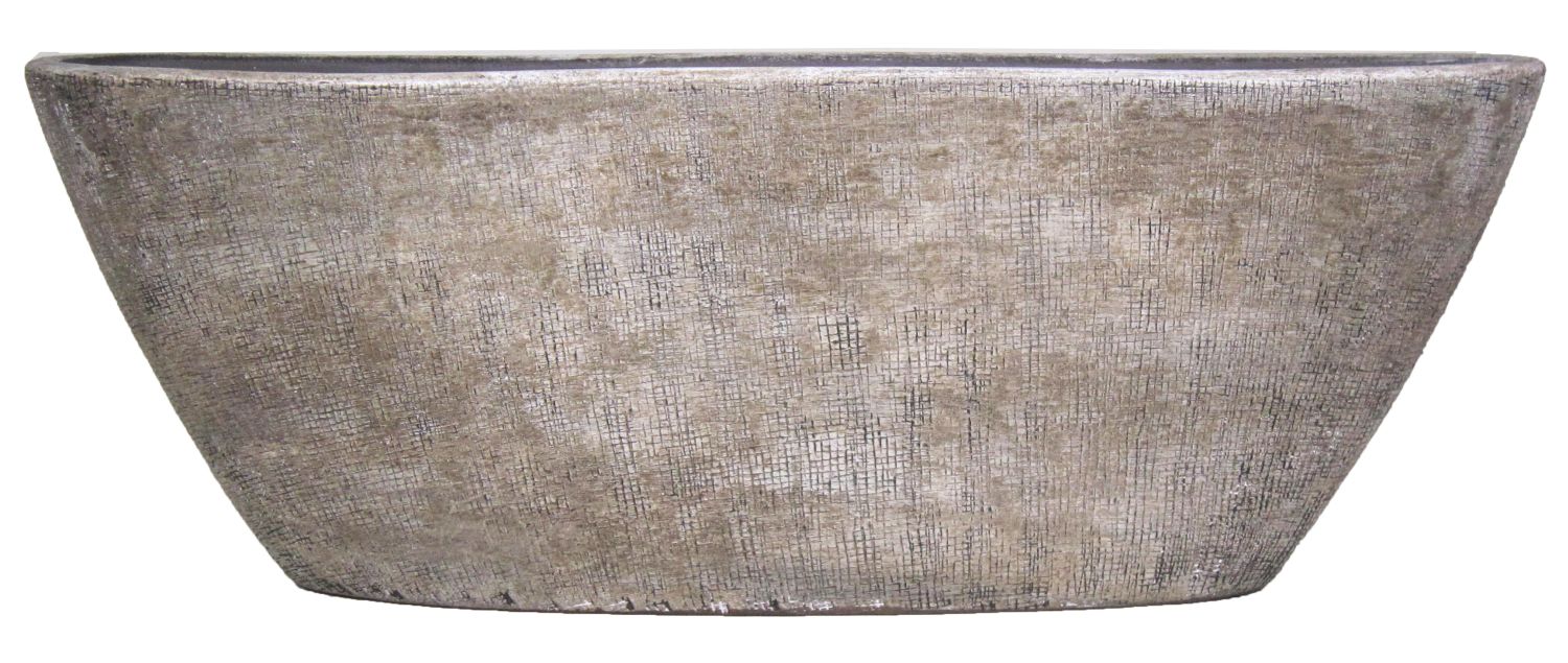 Coupe à fleurs AGAPE en céramique de couleur blanc-brun d'une longueur d'environ 68 cm et d'une hauteur d'environ 24 cm.
