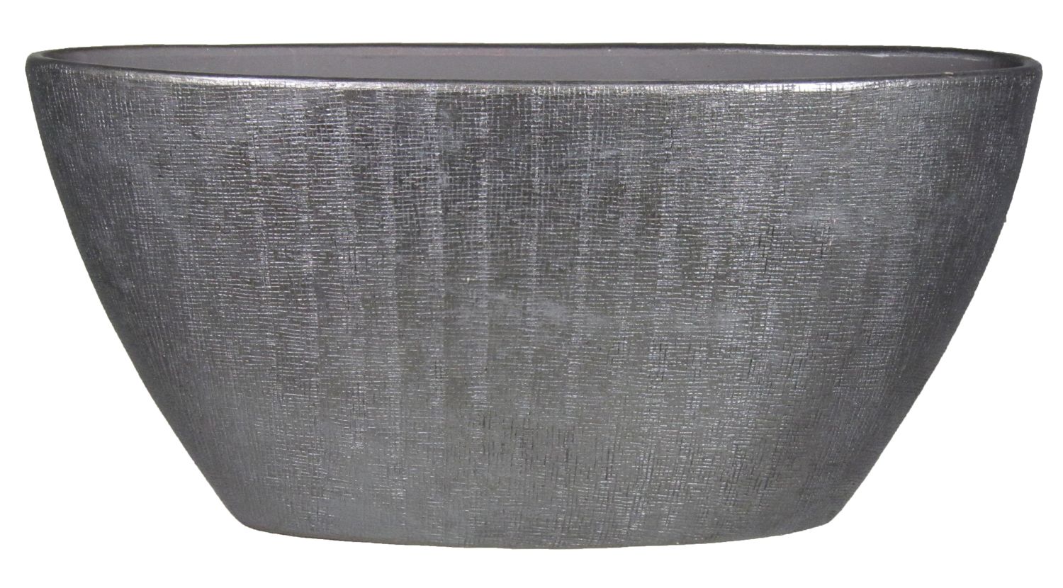 Coupe à fleurs AGAPE en céramique de couleur noire d'une longueur d'environ 73 cm et d'une hauteur d'environ 36 cm.