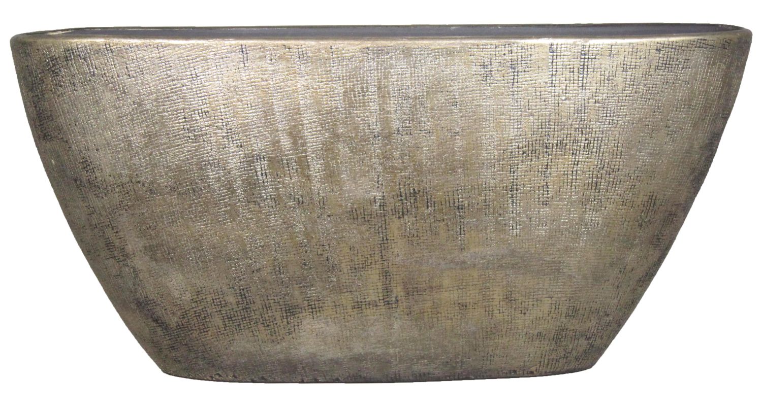 Coupe à fleurs AGAPE en céramique de couleur or d'une longueur d'environ 73 cm et d'une hauteur d'environ 36 cm.
