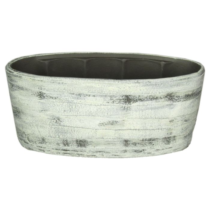 Pot à plantes ADELPHOS en céramique de couleur blanc-gris foncé d'une longueur d'environ 33 cm et d'une hauteur d'environ 15 cm.