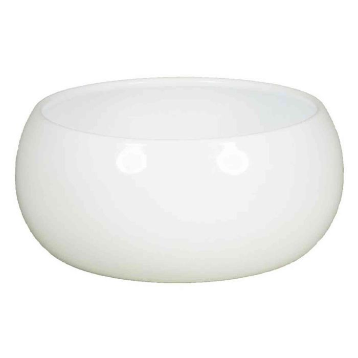 Cache-pot en céramique KARADSCH de couleur blanche avec un diamètre d'environ 18 cm et une hauteur d'environ 8,5 cm.