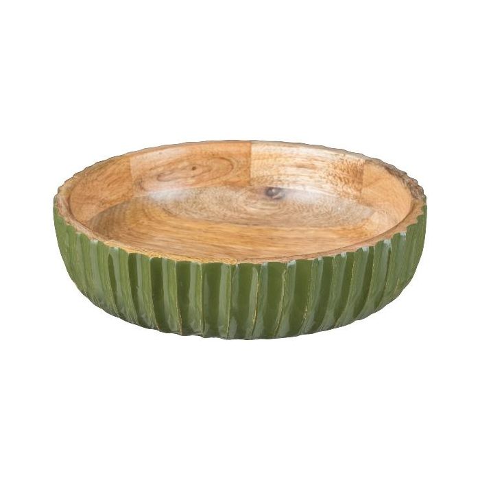 Coupe décorative MARAMA en bois de manguier, striée, vert-naturel, 6cm, Ø20cm