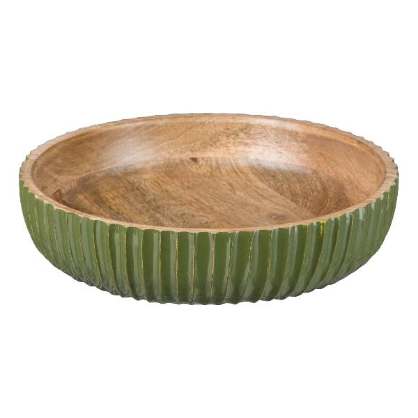 Coupe décorative MARAMA en bois de manguier, striée, vert-naturel, 6cm, Ø25cm