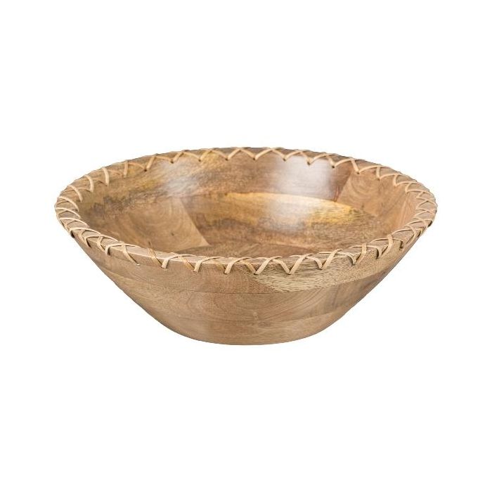 Coupe en bois de manguier MELOBU, avec une couture décorative, naturel, 8cm, Ø25cm
