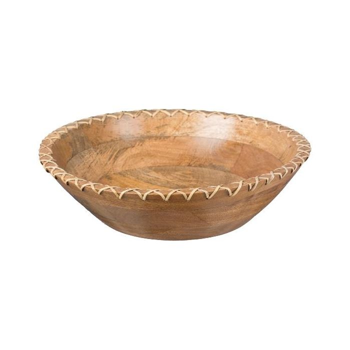 Coupe en bois de manguier MELOBU, avec une couture décorative, naturel, 8cm, Ø30cm