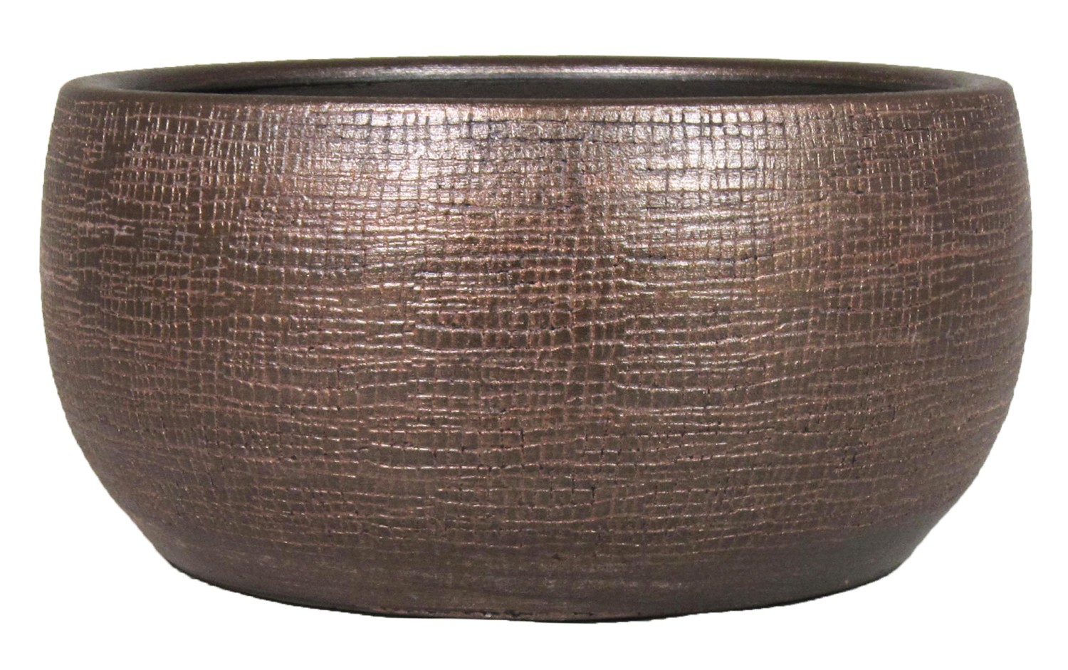 Coupe à fleurs AGAPE en céramique de couleur cuivre d'un diamètre d'environ 33 cm et d'une hauteur d'environ 15 cm.