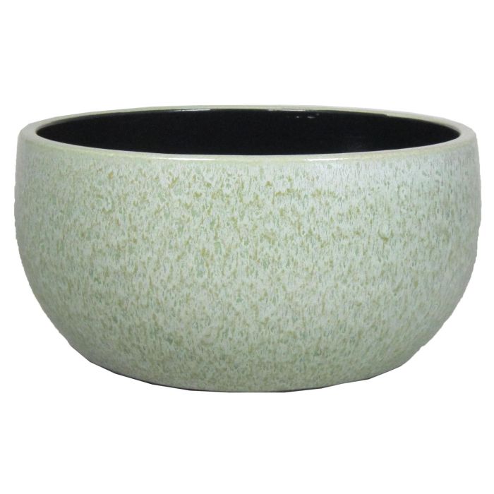 Coupe de plantes ELIEL en céramique de couleur vert menthe-blanc avec un diamètre d'environ 28 cm et une hauteur d'environ 13 cm.