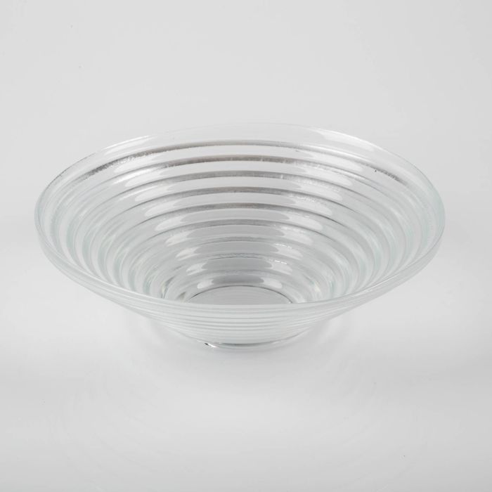 Petite coupe en verre SELMA DELUXE pourvue de rainures. Cette jolie coupelle décorative transparente mesure environ 23 cm de diamètre.