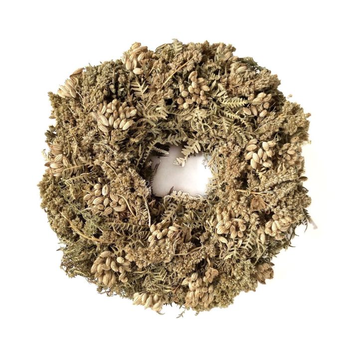 Couronne de fleurs séchées MACARENA sur couronne de paille, fenouil géant, beige-naturel, Ø25cm