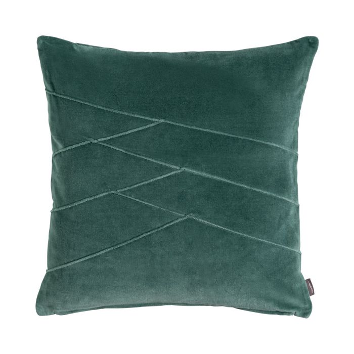 Coussin douillet en velours NOELANI, coutures décoratives obliques, vert-bleu, 45x45cm