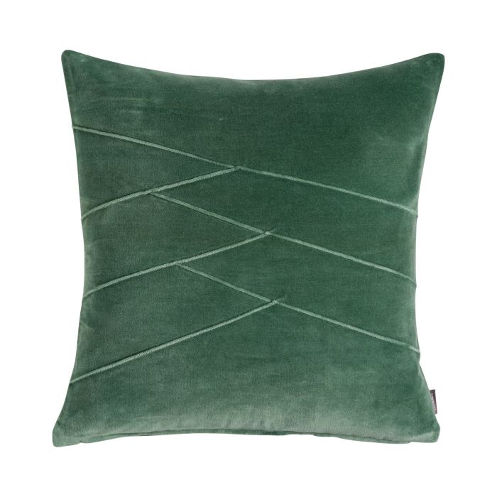 Coussin douillet en velours NOELANI, coutures décoratives obliques, vert foncé, 45x45cm