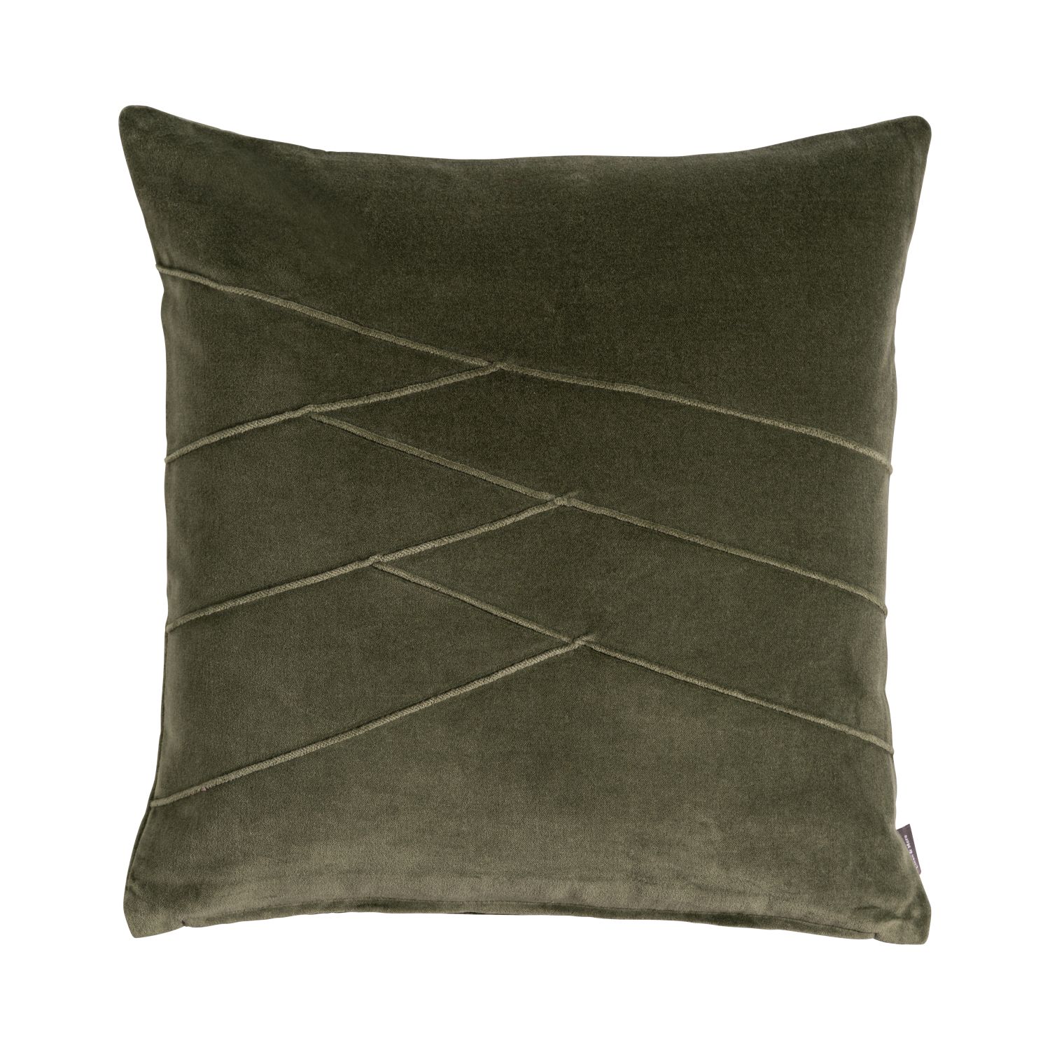 Coussin douillet en velours NOELANI, coutures décoratives obliques, vert olive, 45x45cm