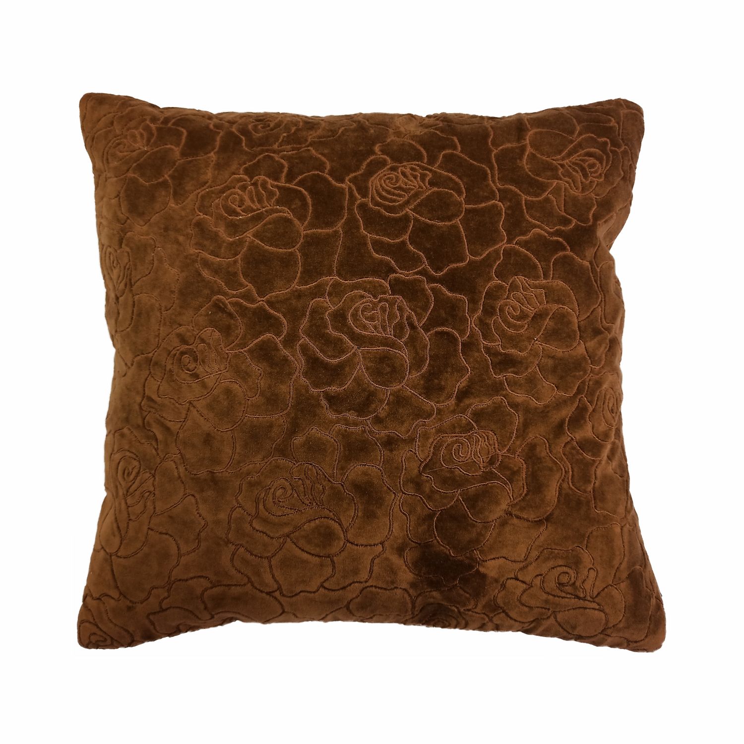 Coussin en velours ALAIA, motif roses, brun chocolat, 45x45cm