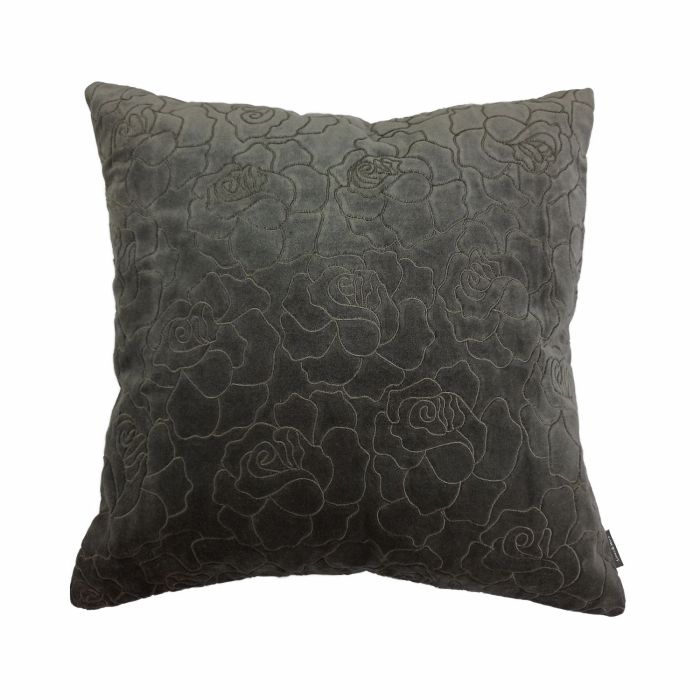 Coussin en velours ALAIA, motif roses, gris, 45x45cm