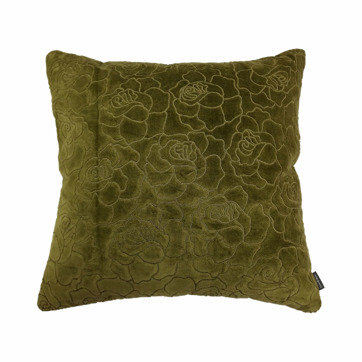 Coussin en velours ALAIA, motif roses, vert-jaune, 45x45cm