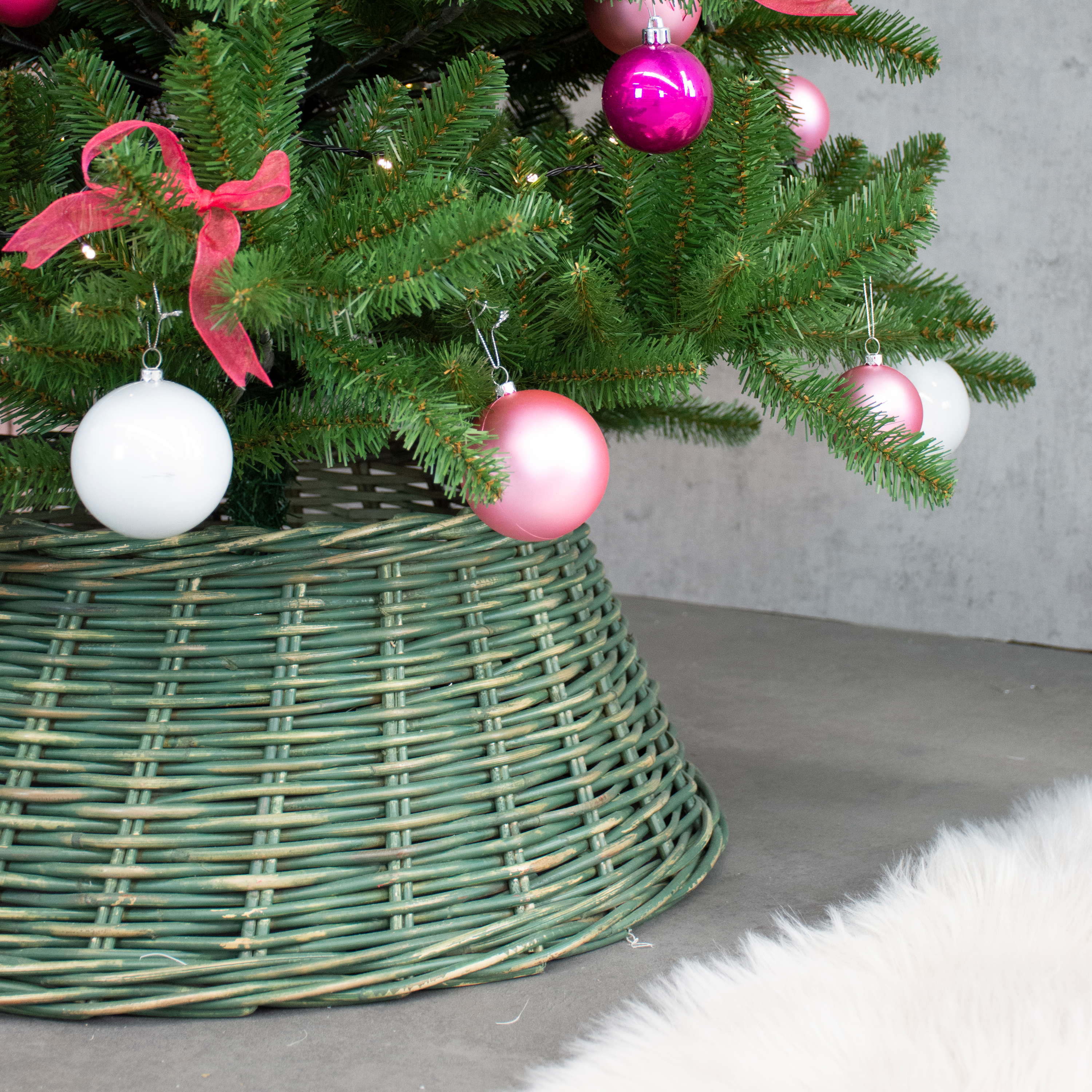 Couvre-pied pour sapin MACARIO en rotin, vert, 26cm, Ø65cm