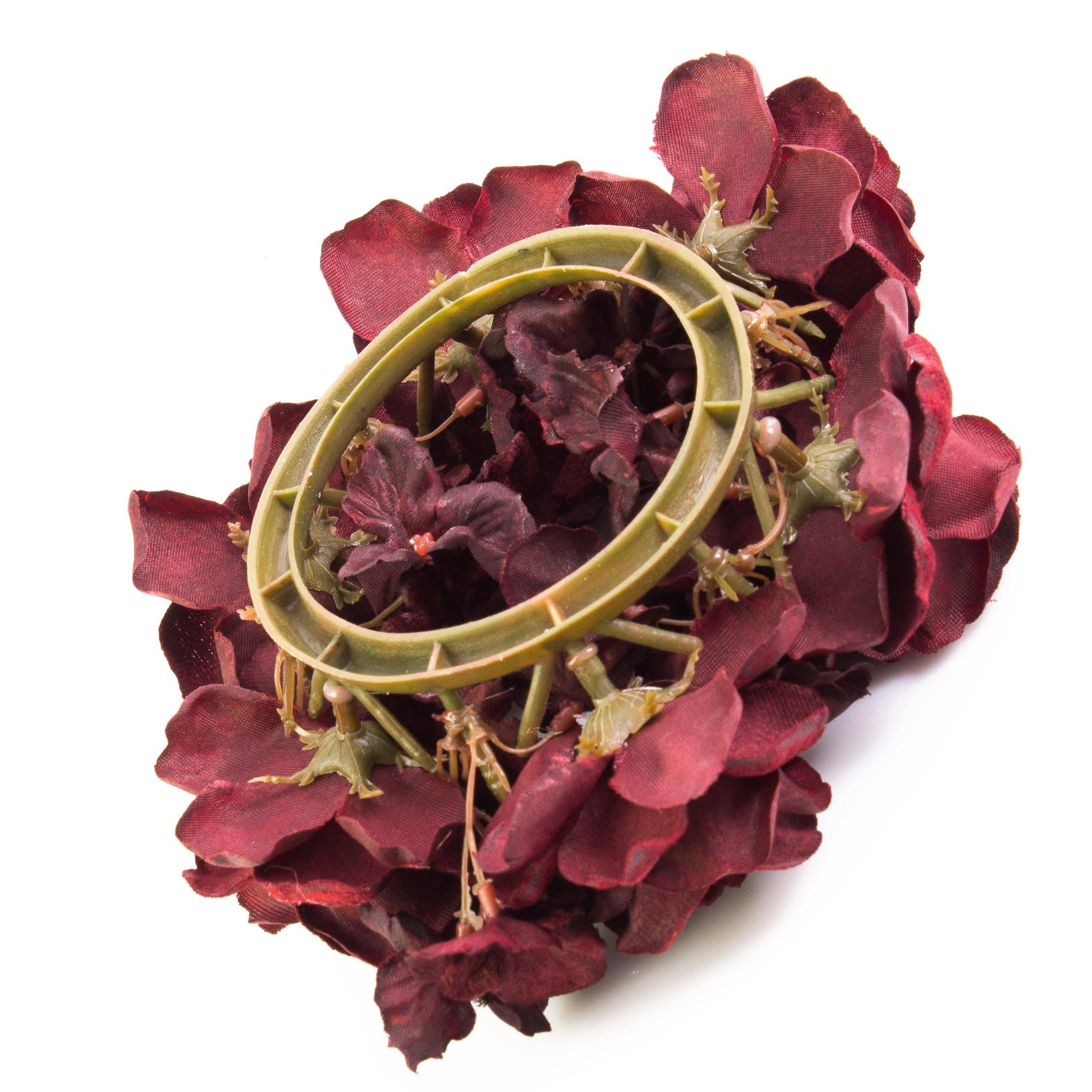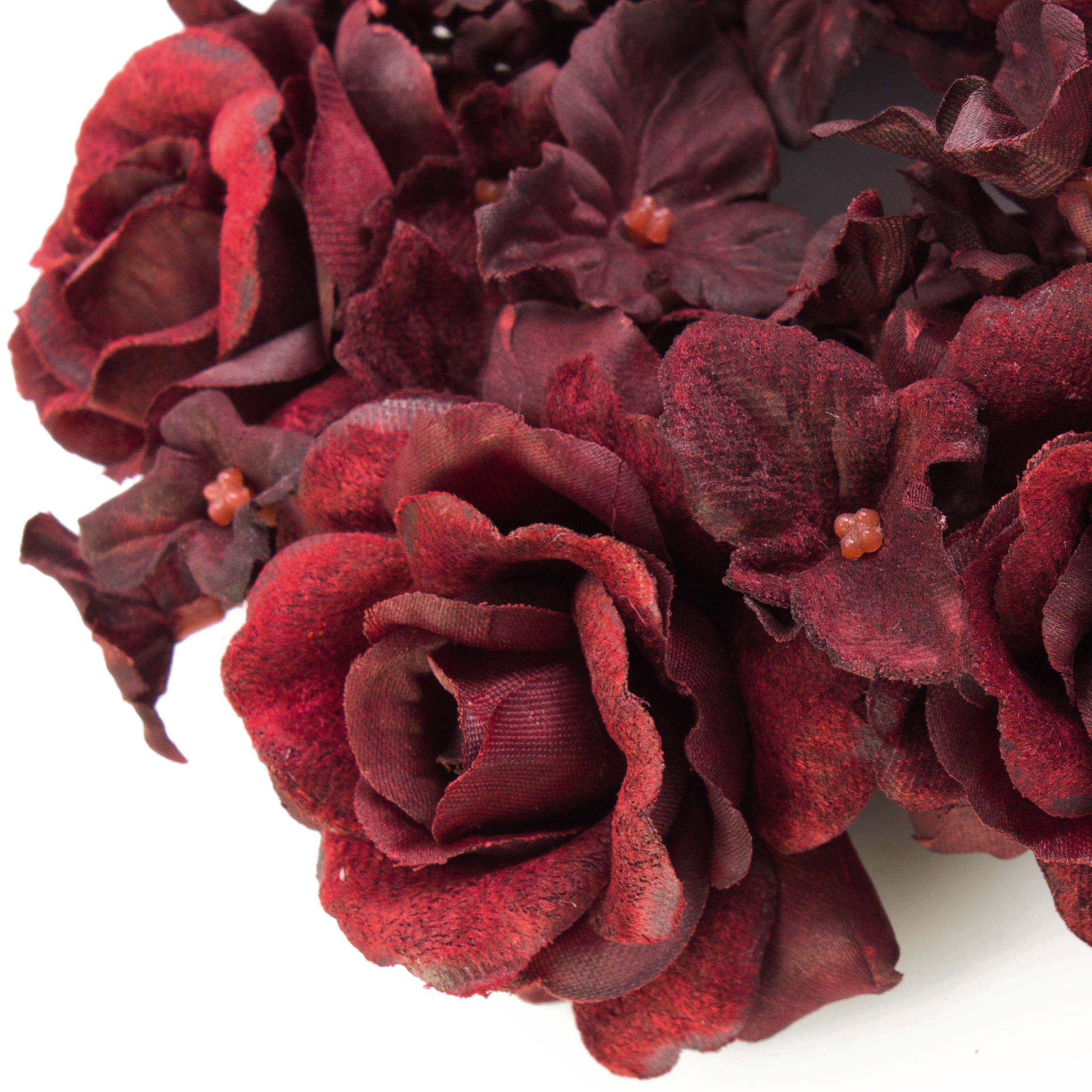 Déco de bougie artificielle INGA, rose, hortensia, rouge foncé, Ø15cm