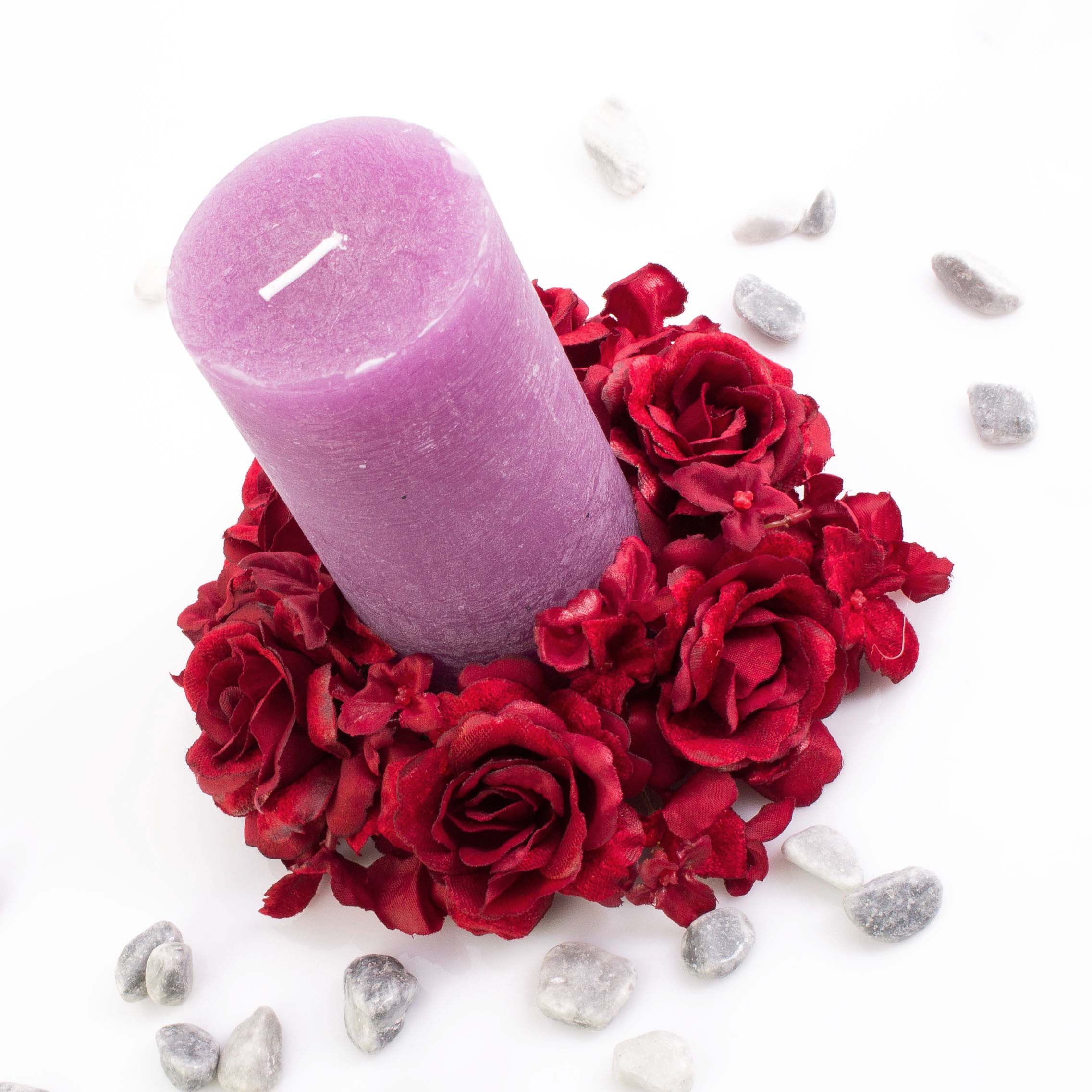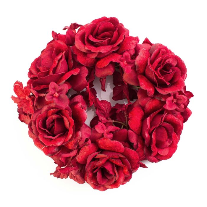 Déco de bougie artificielle INGA, rose, hortensia, rouge, Ø15cm