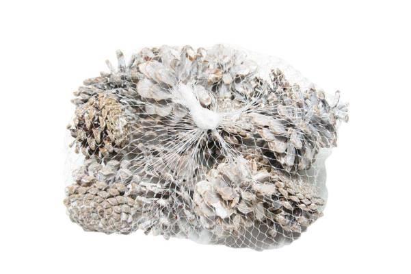 Décoration à saupoudrer Pommes de pin UMBRIELLE, blanchi à la chaux, 15 pièces
