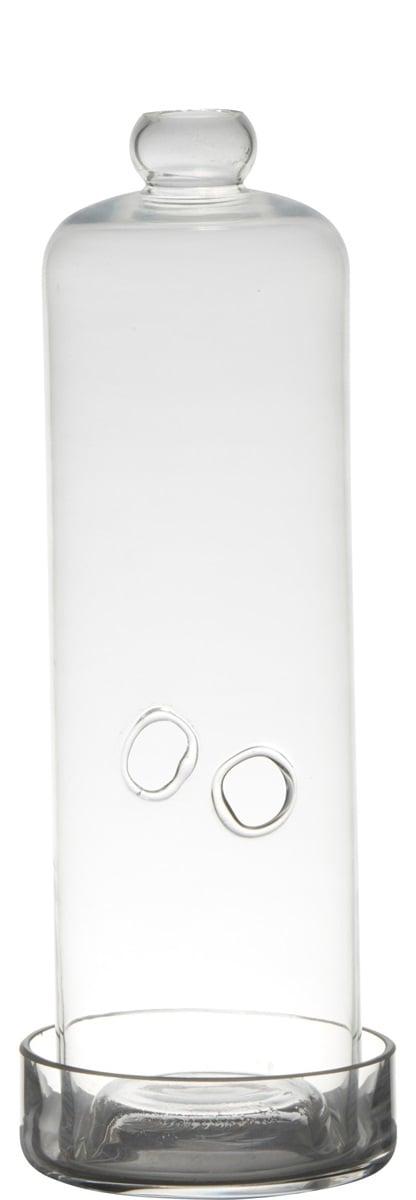 Dôme en verre YAISA avec assiette, trous, poignée, transparent, 30cm, Ø8,5cm