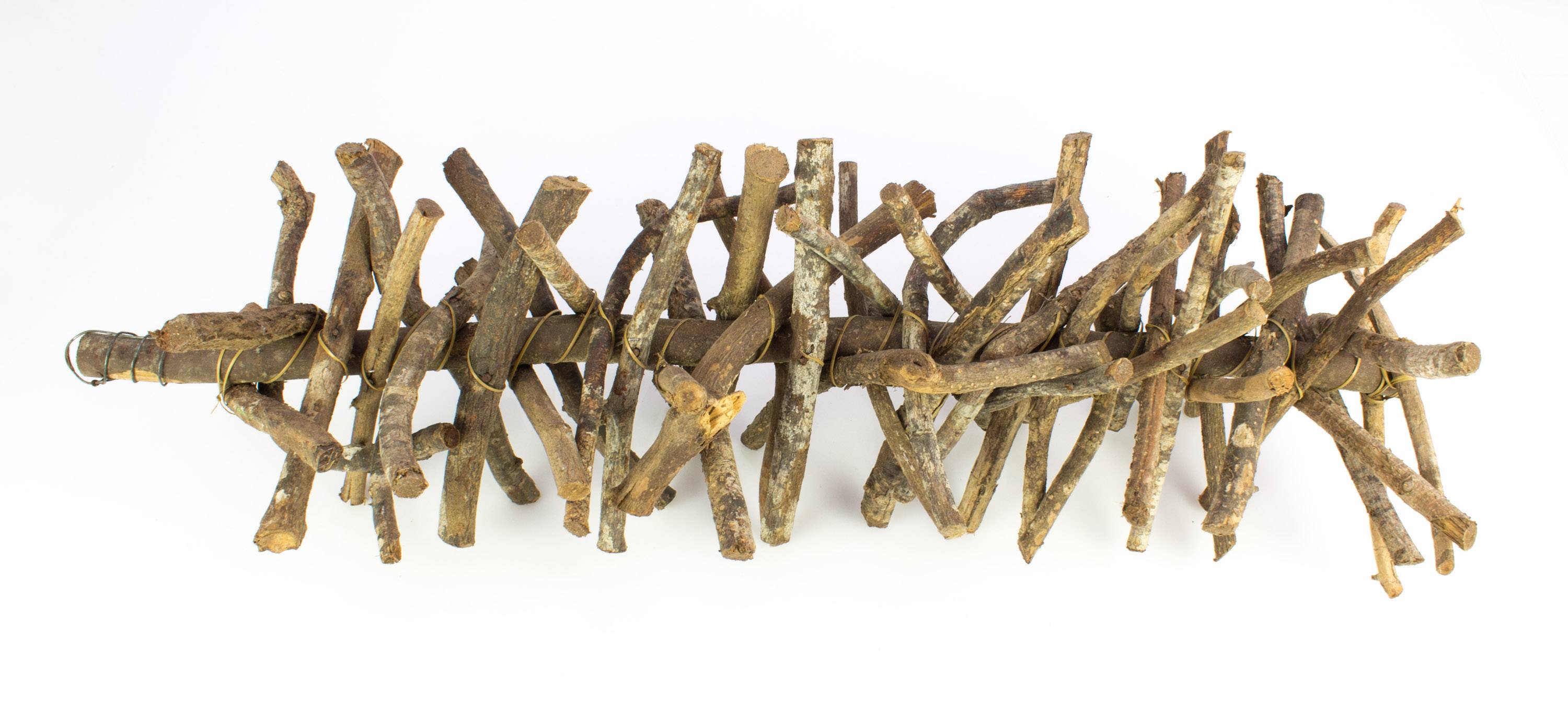 Mobile composé de morceaux de bois de vignes séchéd'une longueur d'environ 60 cm et d'un diamètre d'environ 20 cm. Les branchages donnent à la surface un effet très naturel.