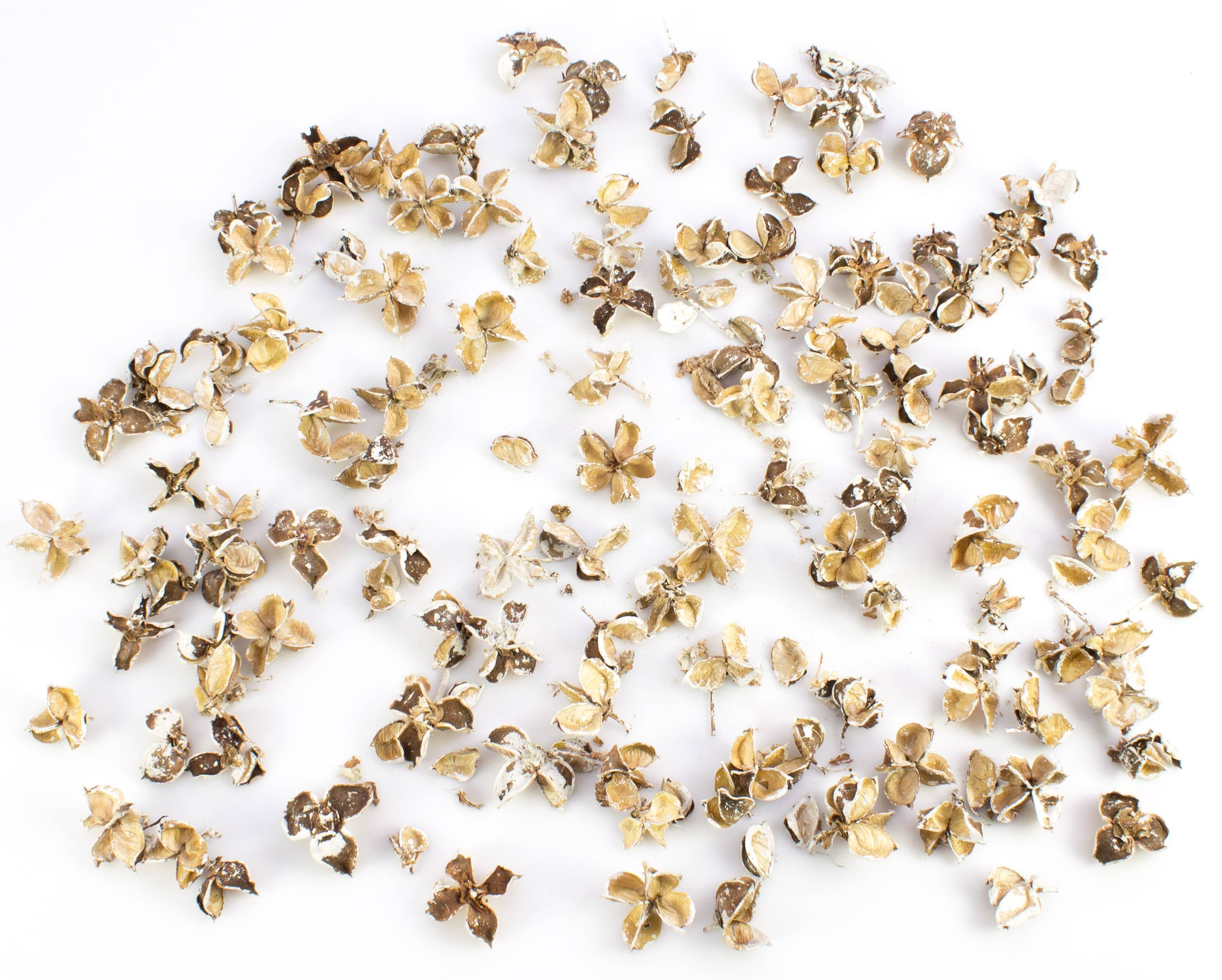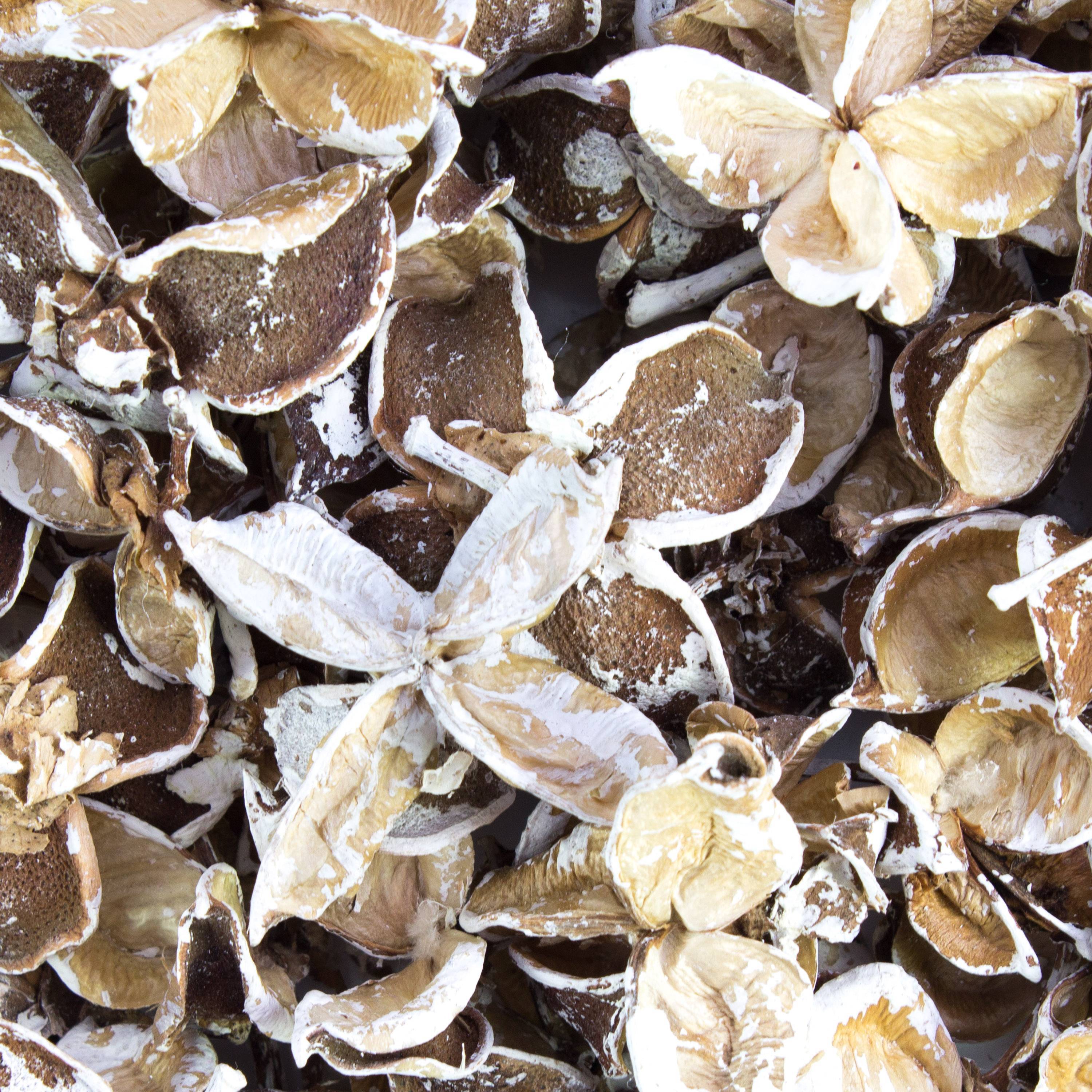 - Les écorces en coton ont une longueur totale d'environ 2-4 cm et un diamètre d'environ 4-6 cm, fruits secs en forme d'étoile avec 3 ou 4 branches