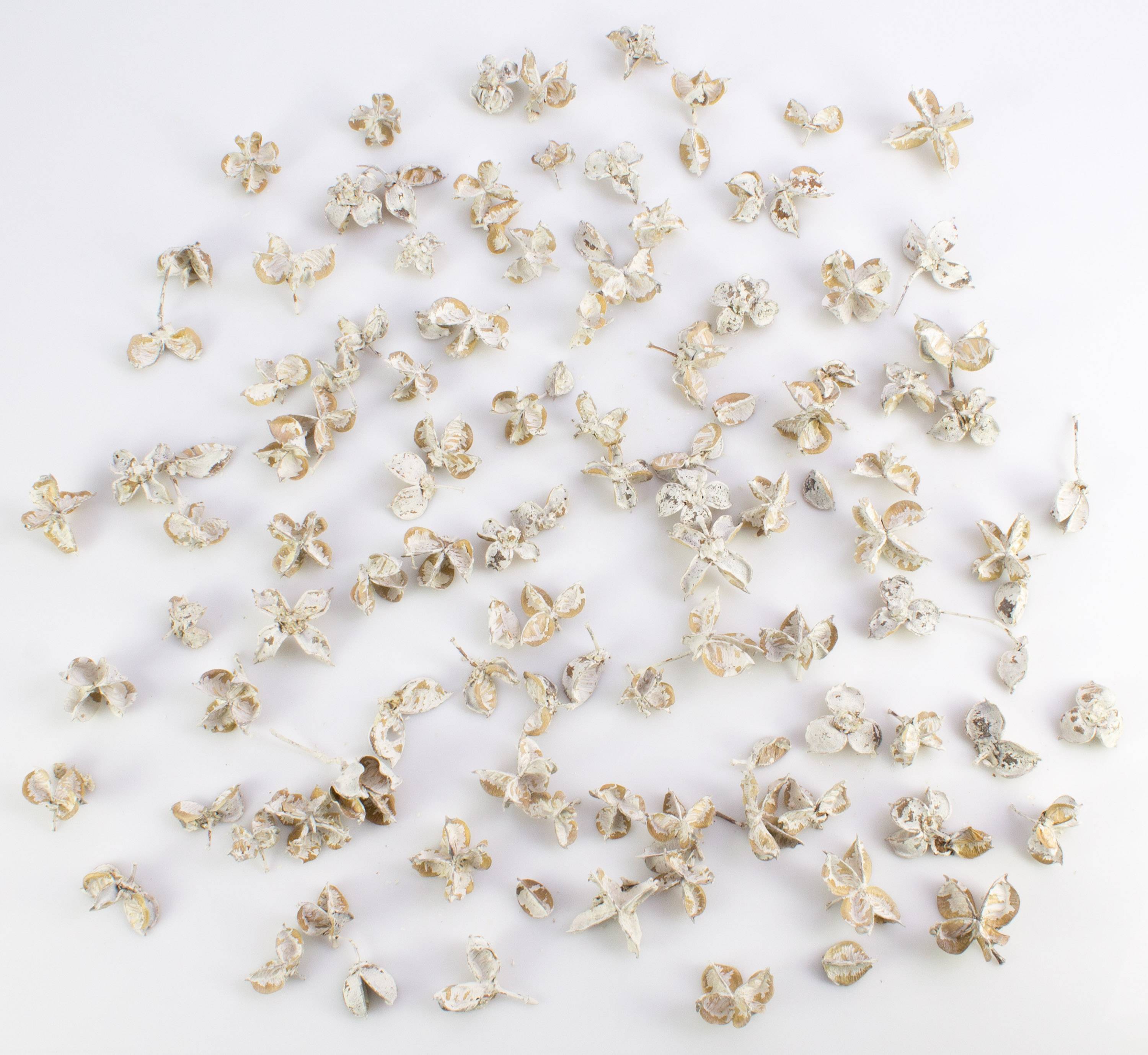 Ensemble d'écorches de fruits secs en coton de dimensions variées d'environ 4 x 6 cm. Leur surface blanche est d'un effet naturel pour votre décoration.