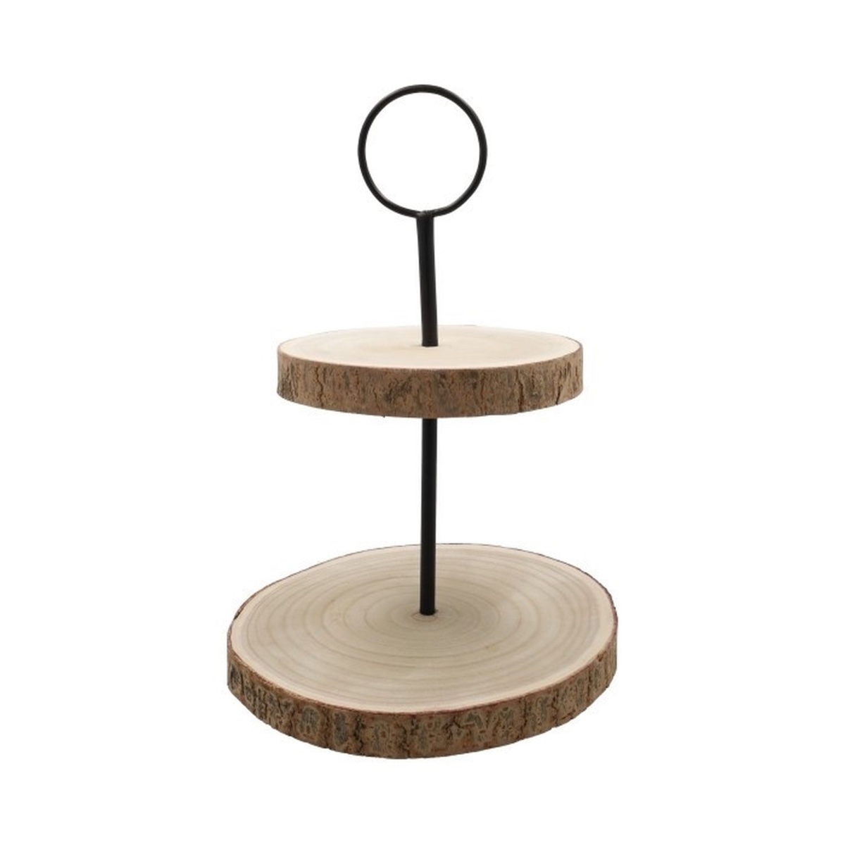 Étagère en bois de paulownia JESSALYN, 2 niveaux, naturel, 38cm, Ø33cm