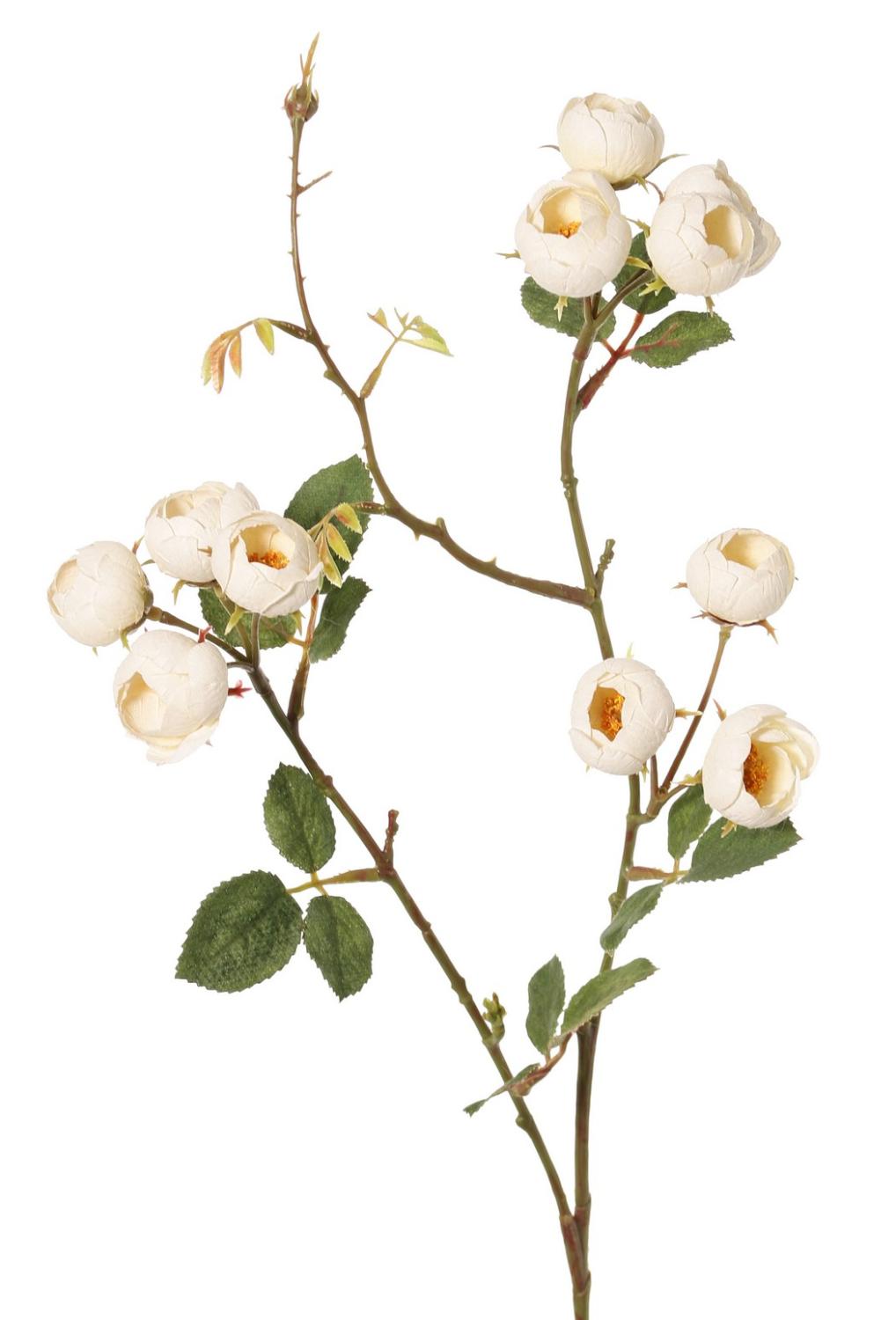 Fausse branche de rose-chou LORRAINE, collection écologique, crème-jaune, 65cm, Ø2,5cm