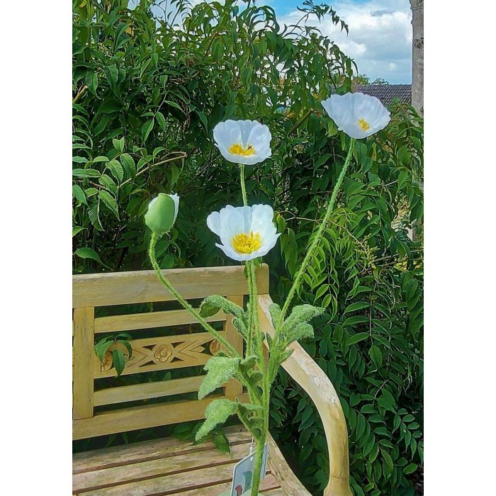Fausse branche fleurie Pavot OXANDRINE, crème-blanc, 60cm