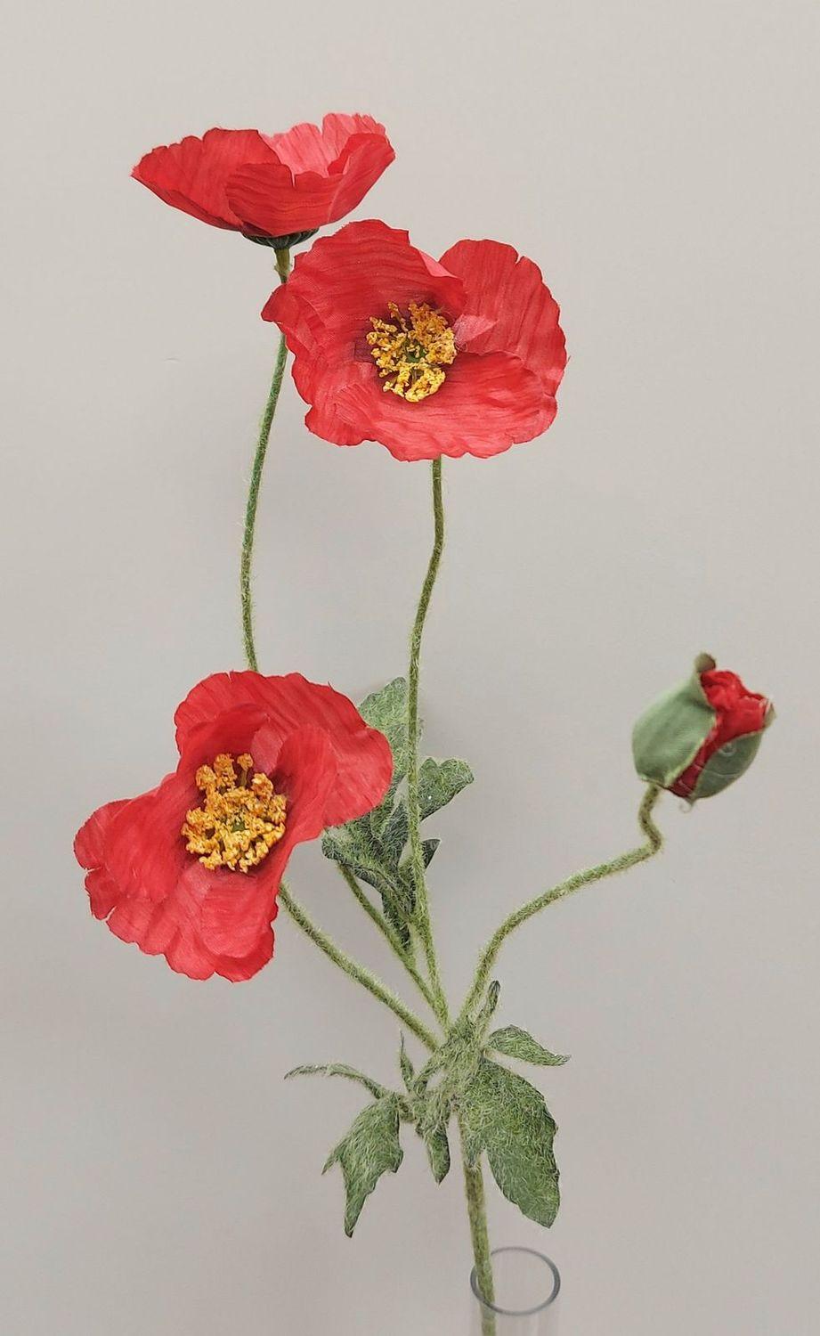 Fausse branche fleurie Pavot OXANDRINE, rouge, 60cm