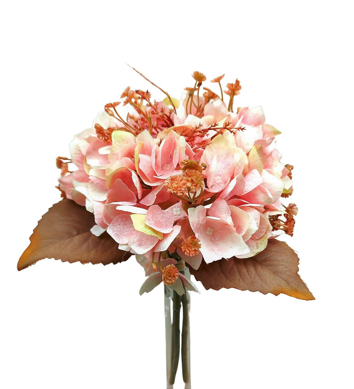 Faux bouquet d'hortensias NAGOLD, gypsophile, astilbe, aspect sec, rose-jaune-orange, 35cm
