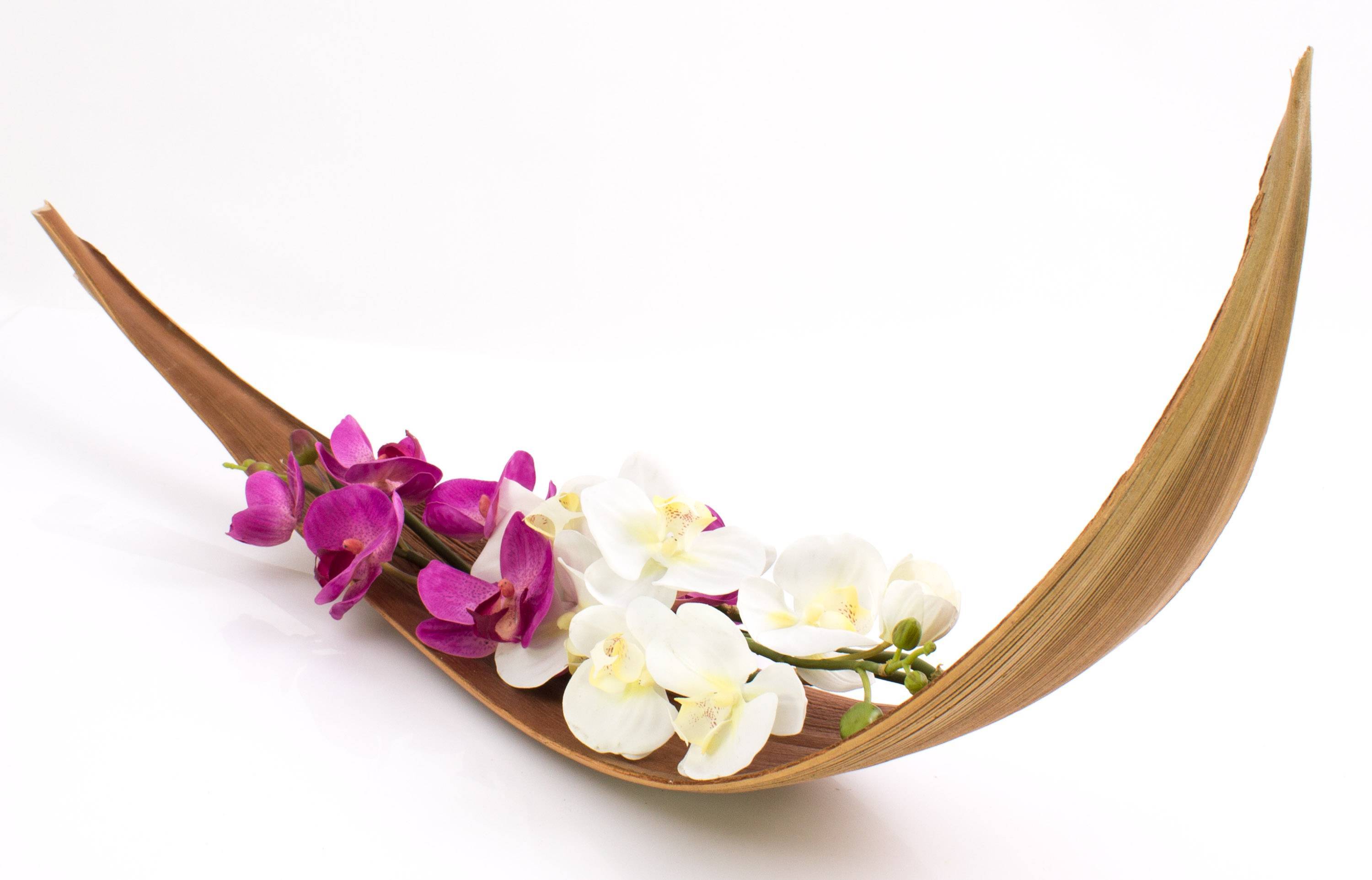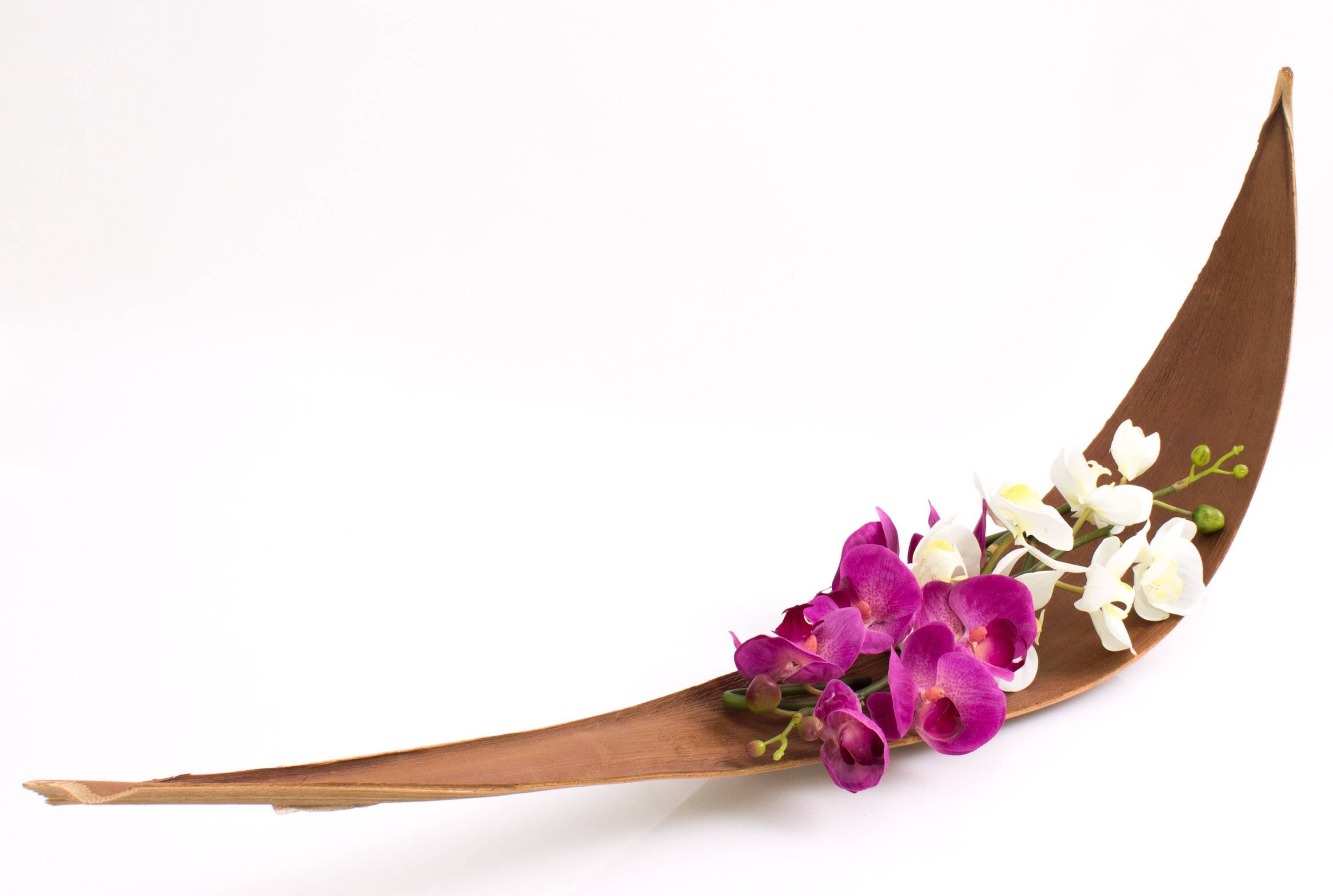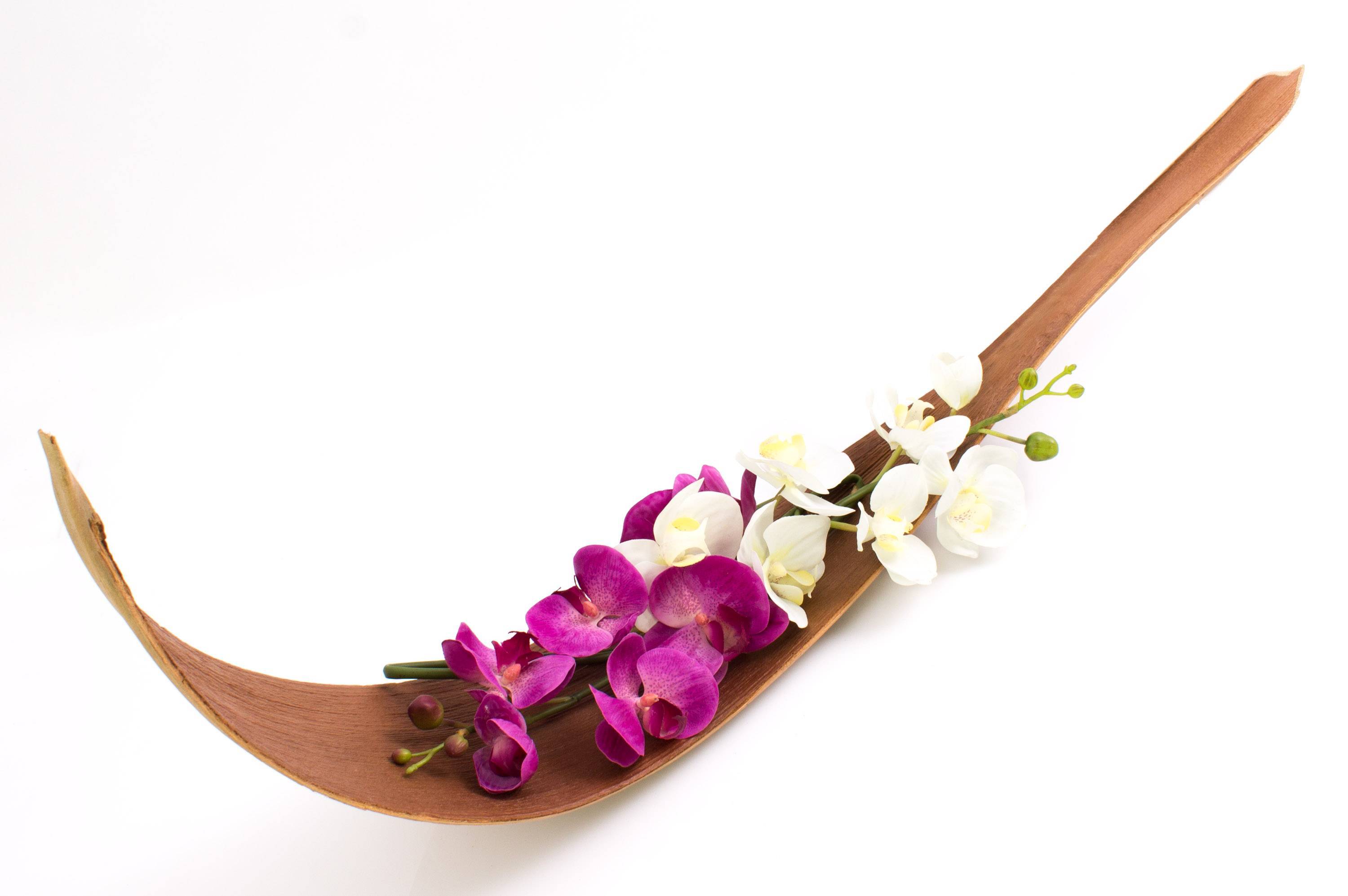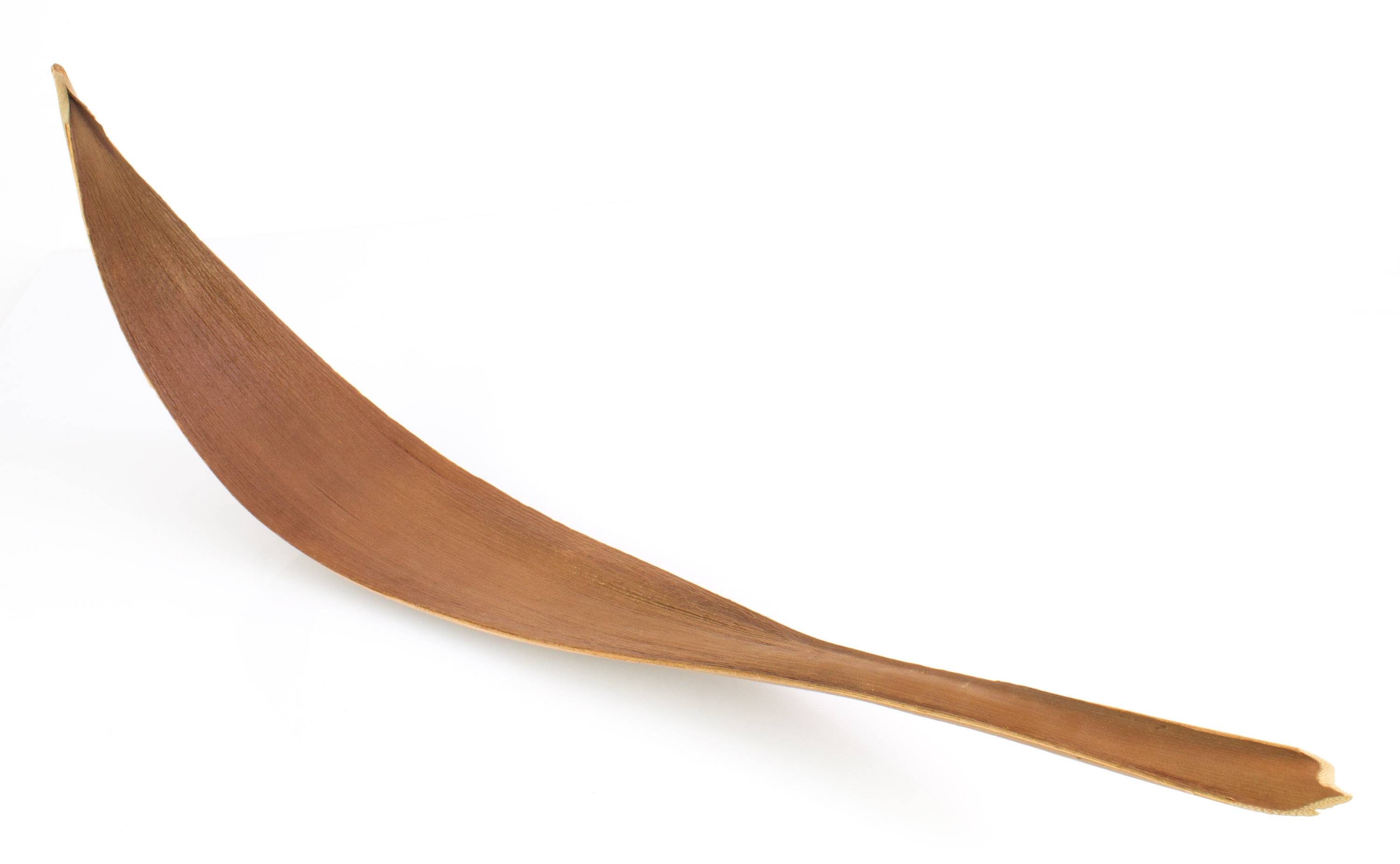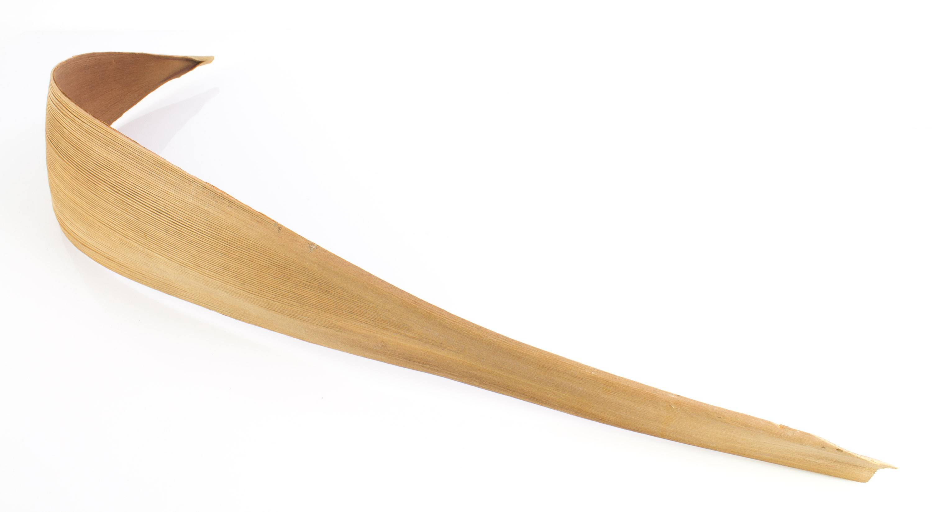 Feuille de coco séchée grand format d'environ 115 cm. Cette feuille courbée est à l'état naturel et n'a pas besoin de soutien comme illustré. Etant donné que chaque article est unique, chaque forme a sa propre couleur et sa propre forme.