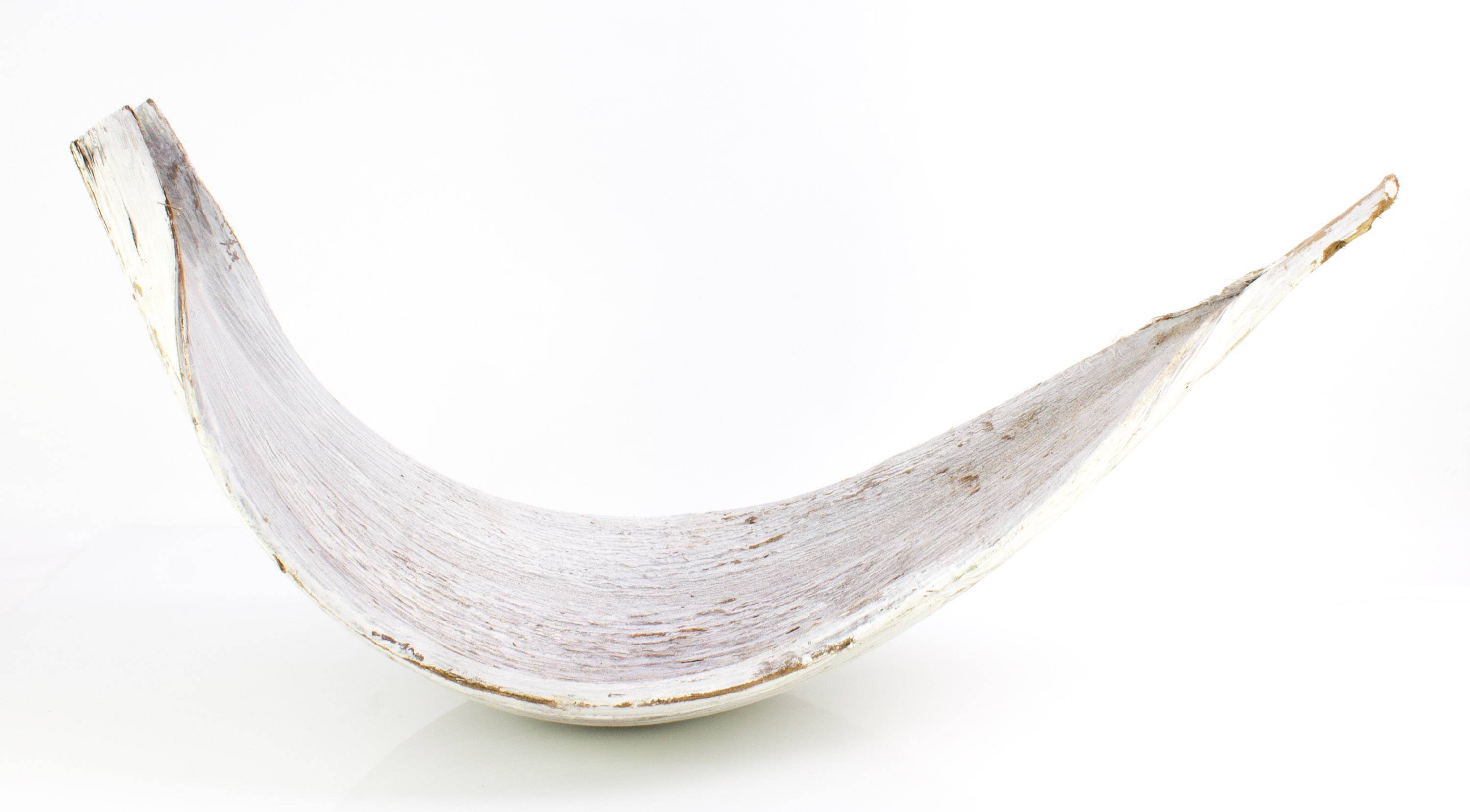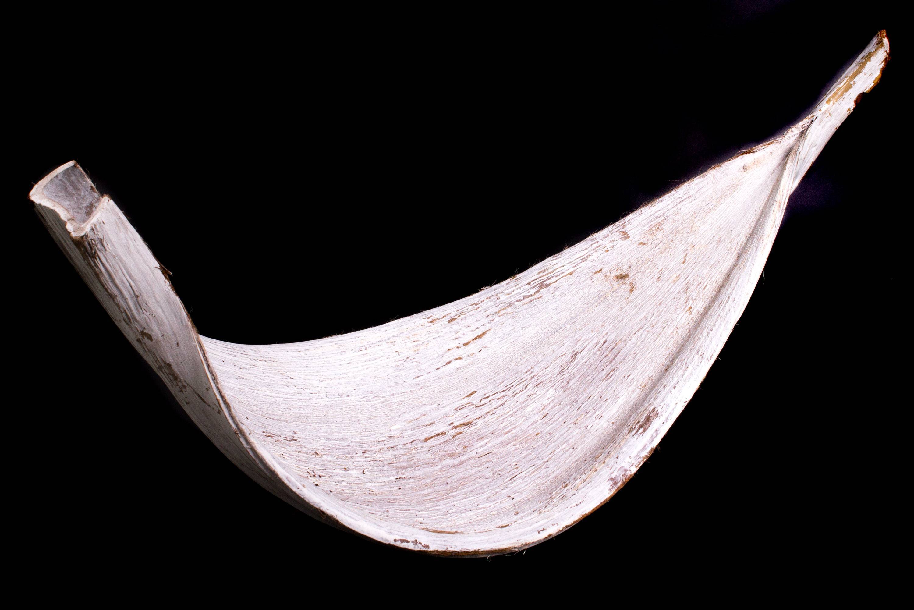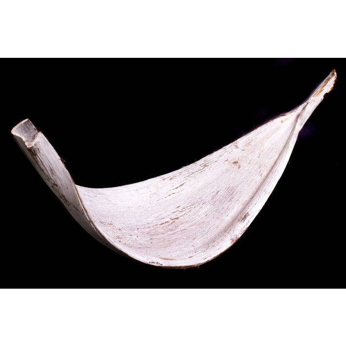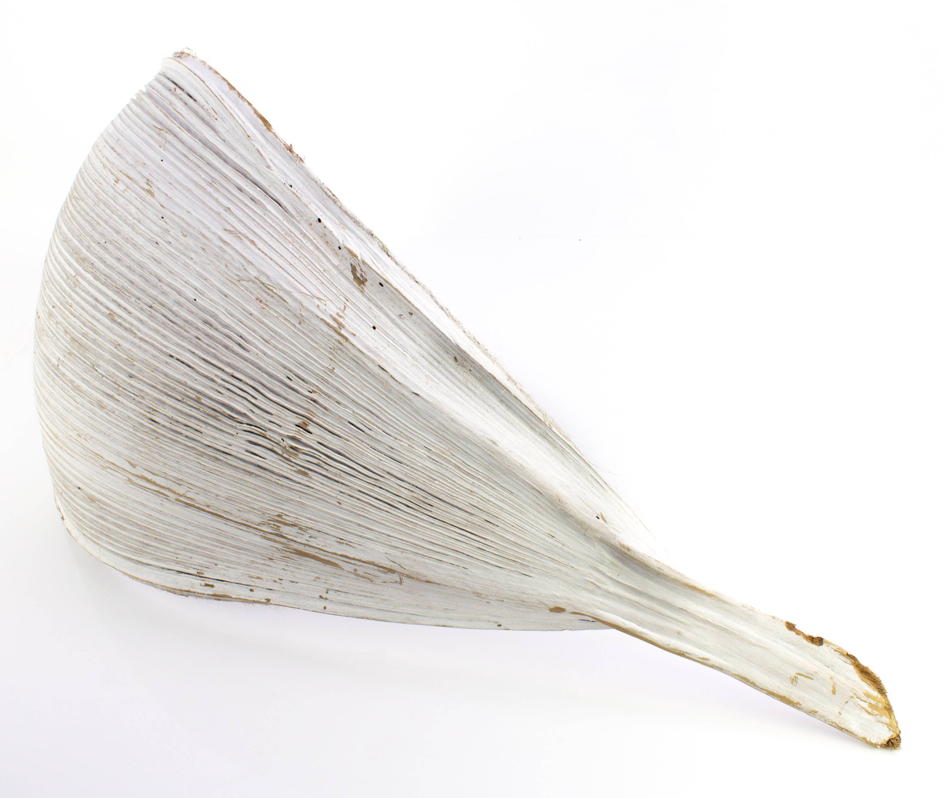 - La surface de la feuille de palmier a été blanchie, d'où la couleur blanche. La surface marron originelle est encore partiellement visible.