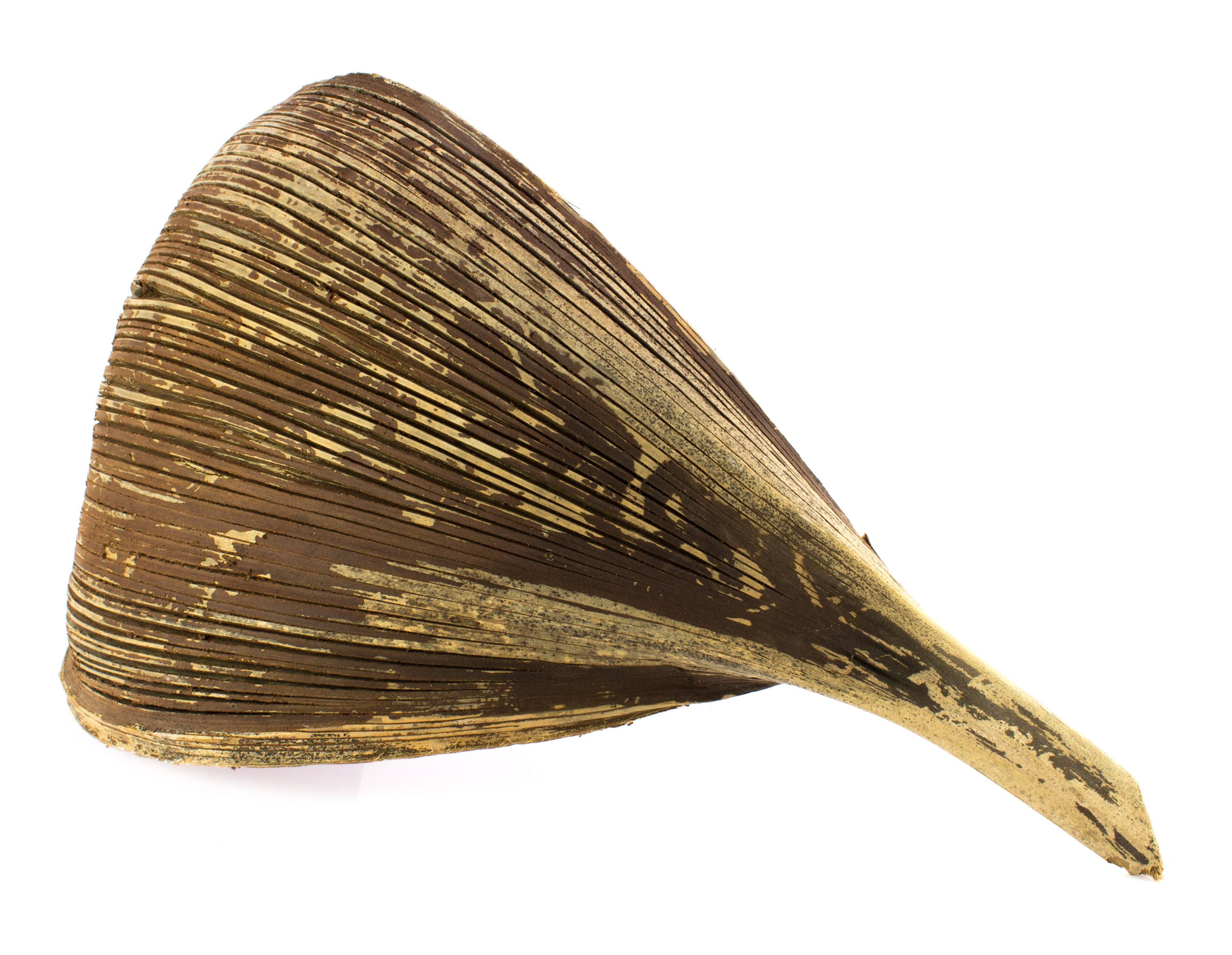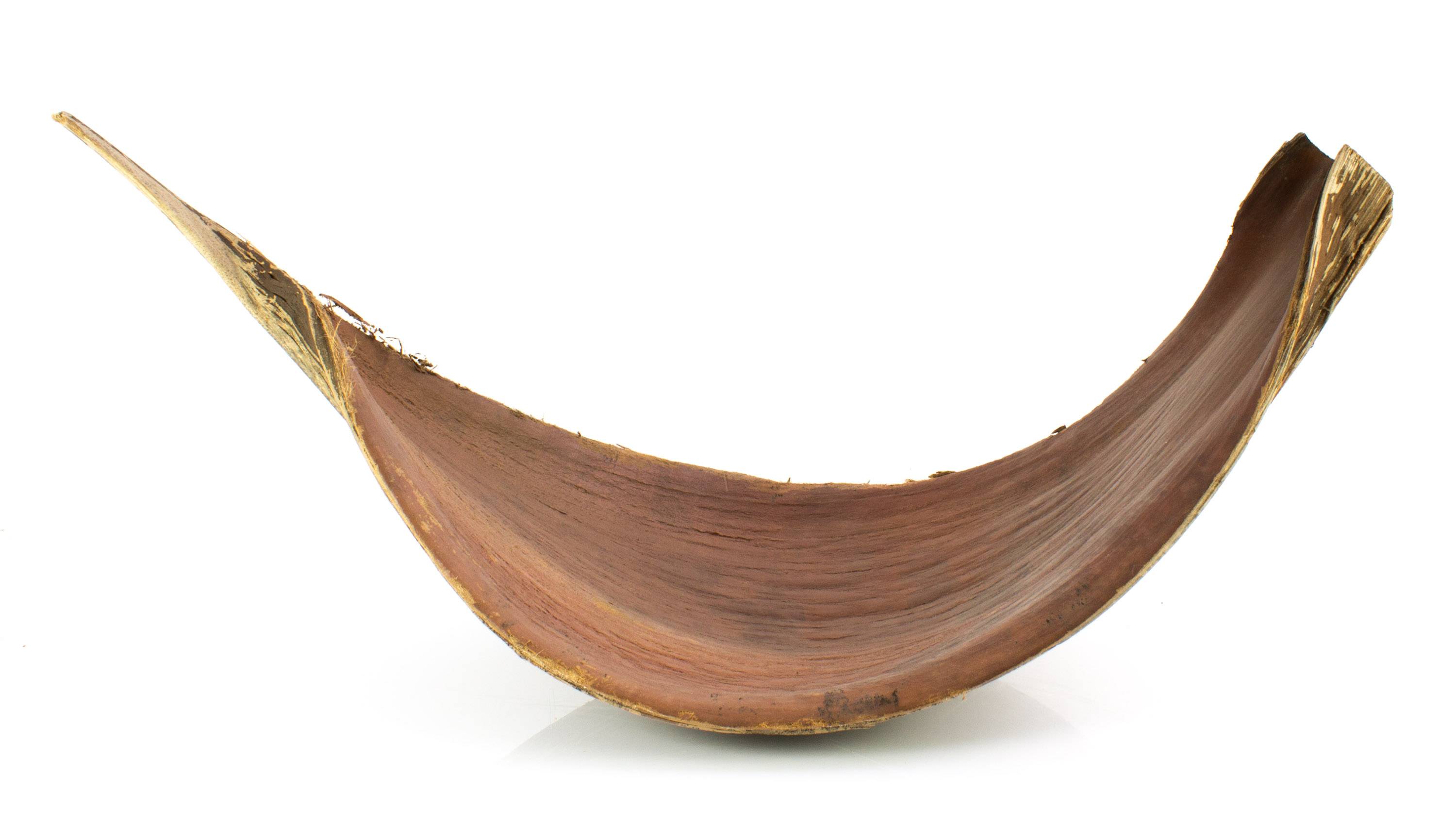 Feuille de coco séchée grand format d'environ 30-80 cm. Cette feuille courbée est à l'état naturel et n'a pas besoin de soutien comme illustré