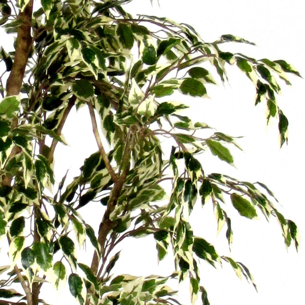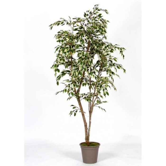 Ficus Benjamina artificiel LISEROSE, troncs en bois véritable, vert-blanc, 210cm - Made in Italy