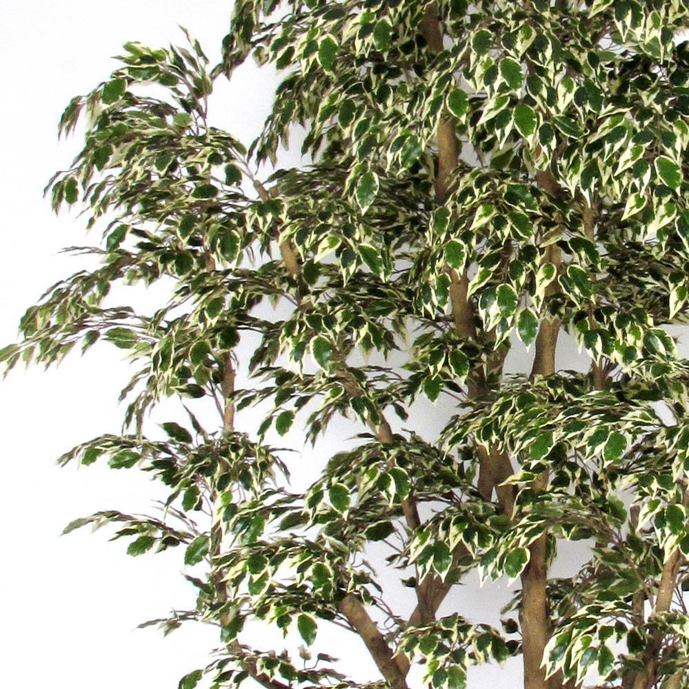 Ficus Benjamina décoratif MIMITIGO, troncs en bois véritable, vert-blanc, 175cm - Made in Italy