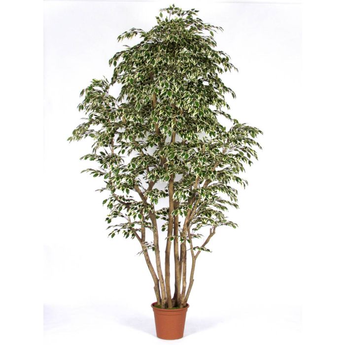 Ficus Benjamina décoratif MIMITIGO, troncs en bois véritable, vert-blanc, 250cm - Made in Italy