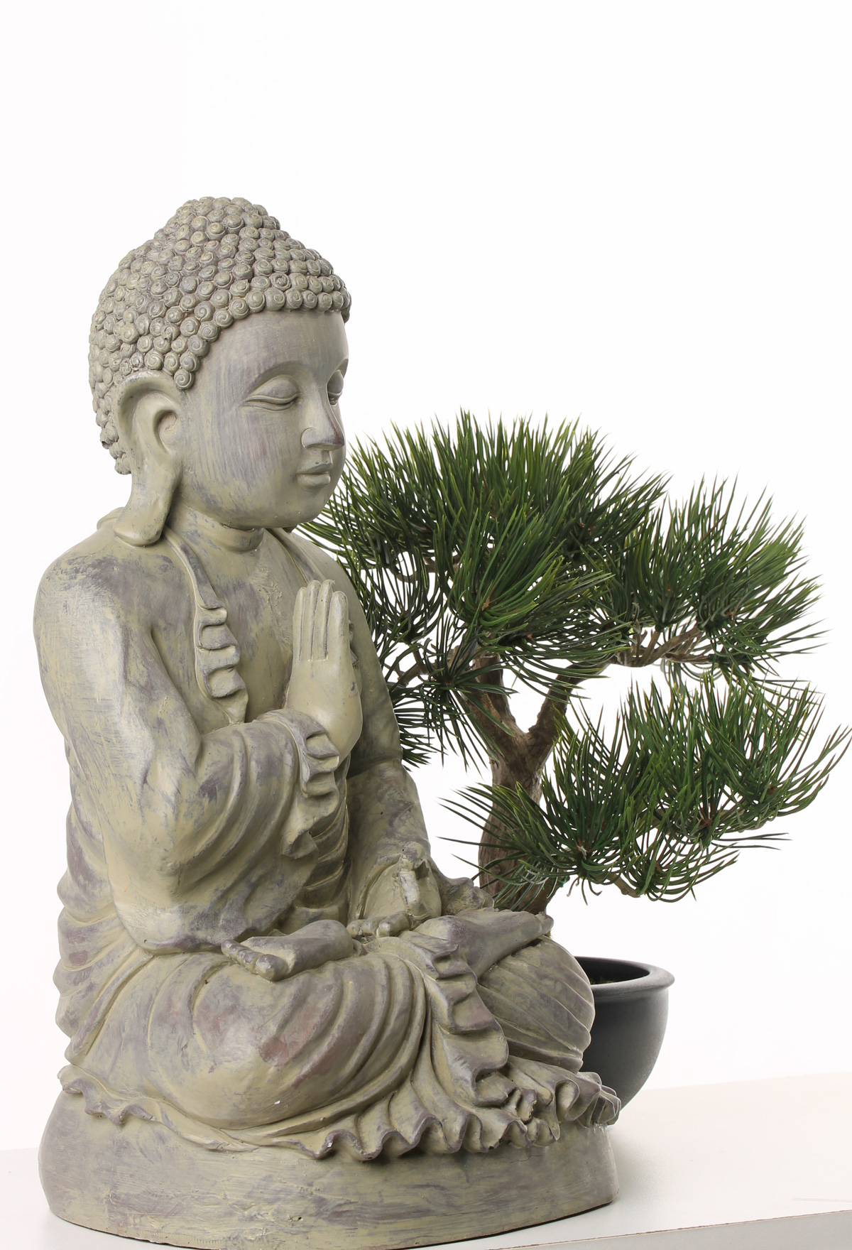 Figurine de Bouddha SHANTA, assis en train de méditer, gris, 45cm