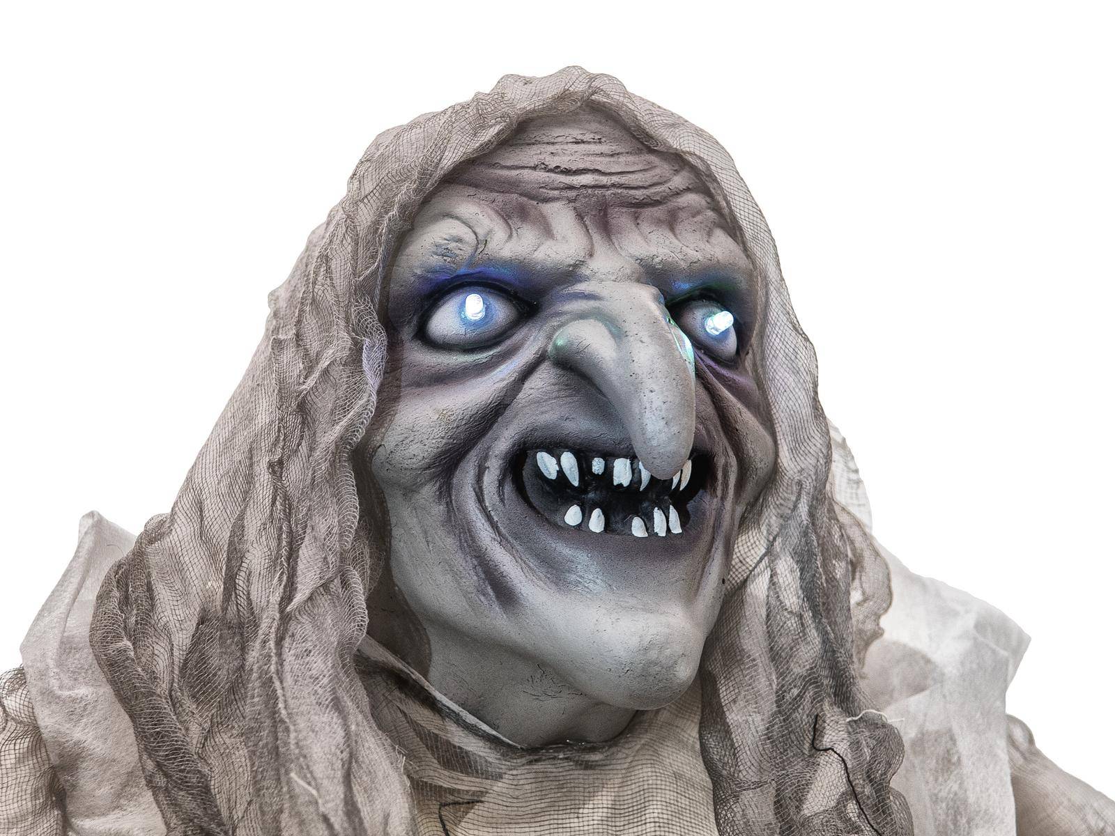 Figurine décorative d'Halloween fantôme sorcière BELLATRIX avec fonction sonore et mouvement, LED, 170cm