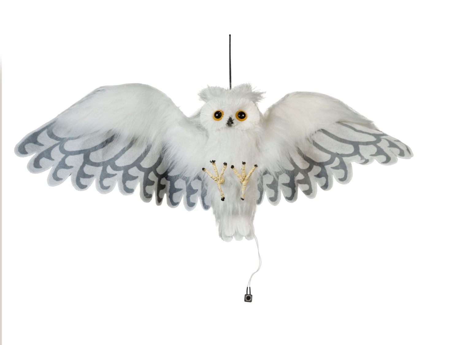 Figurine décorative d'Halloween Harfang des neiges JUNITA, fonction sonore et mouvement, LEDs, 30x75x10cm