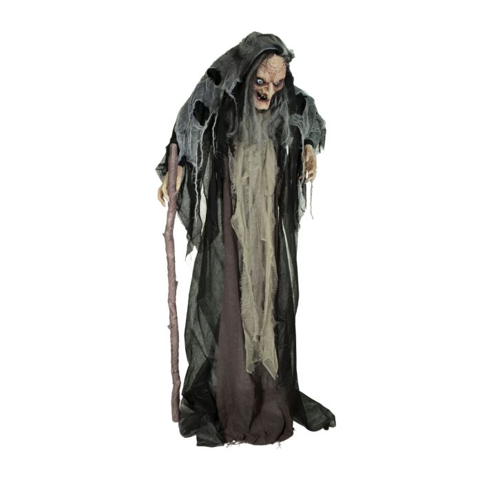 Figurine décorative d'Halloween sorcière MECHTHILD avec canne, fonction sonore et mouvement, LEDs, 160cm