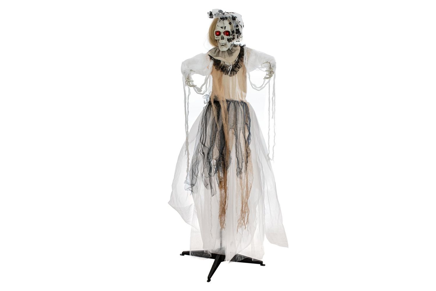 Figurine décorative d'Halloween squelette mariée SCHAKLYN, fonction sonore et mouvement, LEDs, 80x50x170cm