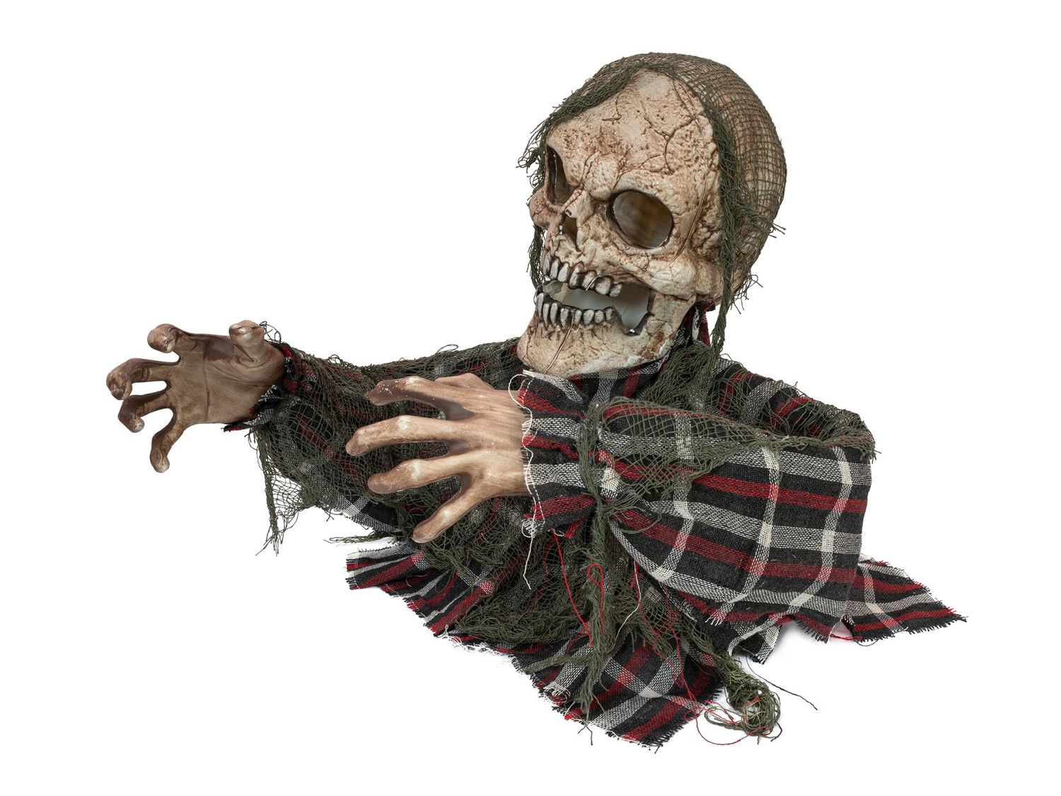 Figurine décorative d'Halloween Squelette zombie LATAWICA, fonction sonore et mouvement, LEDs, 22x10x45cm