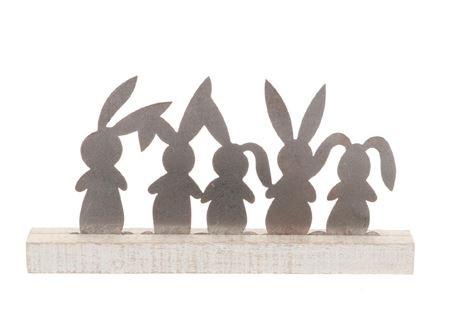 Figurine décorative Lièvres en métal CINCO sur pied en bois, gris-naturel, 35x5x18cm