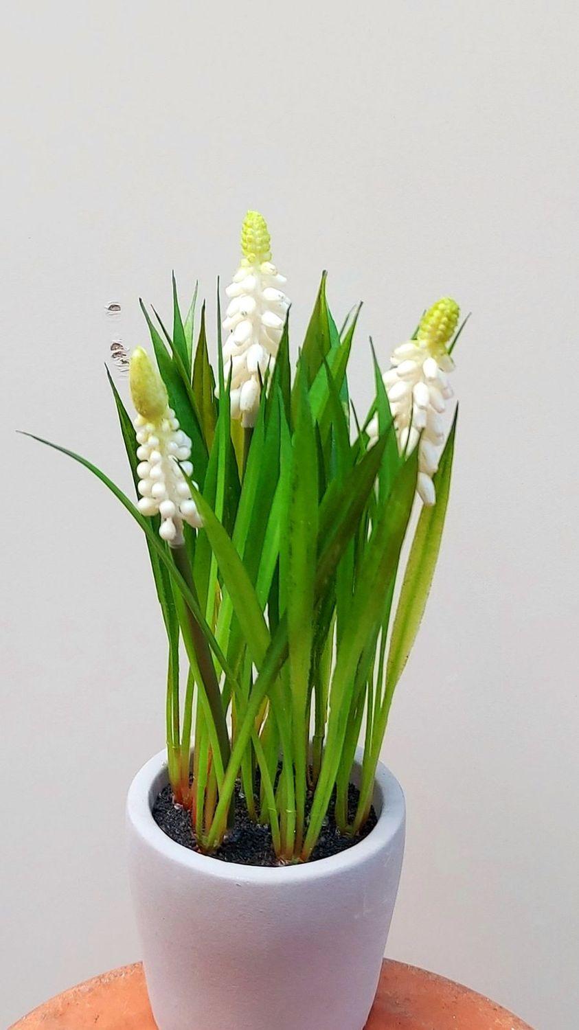 Fleur décorative Muscari NARMADA dans un pot en ciment, blanc, 20cm